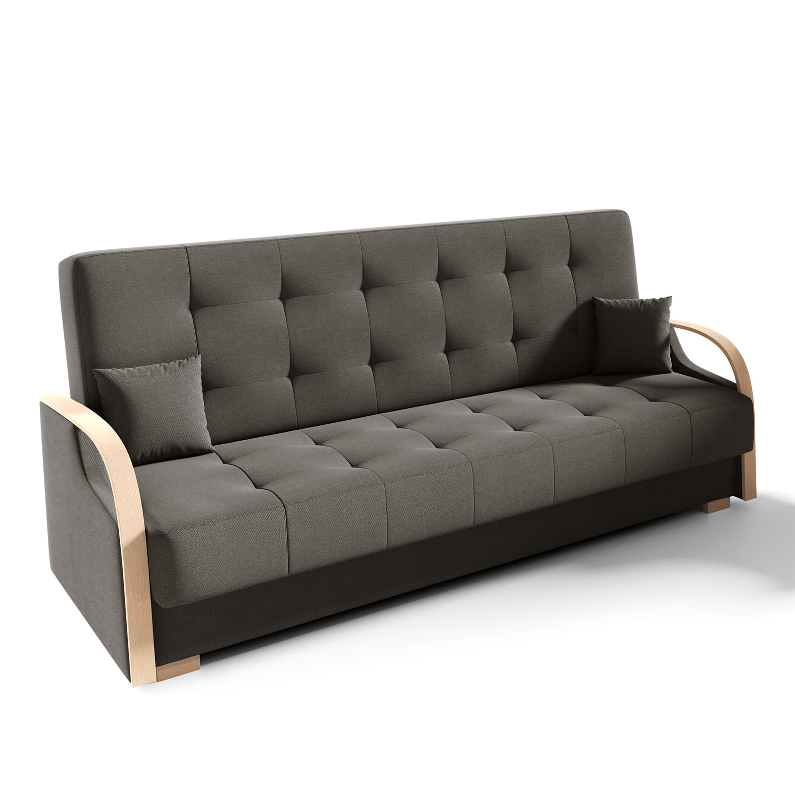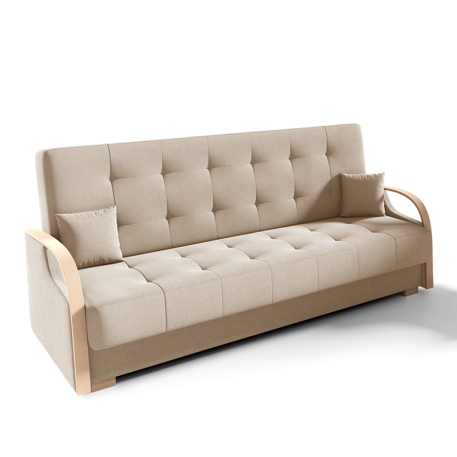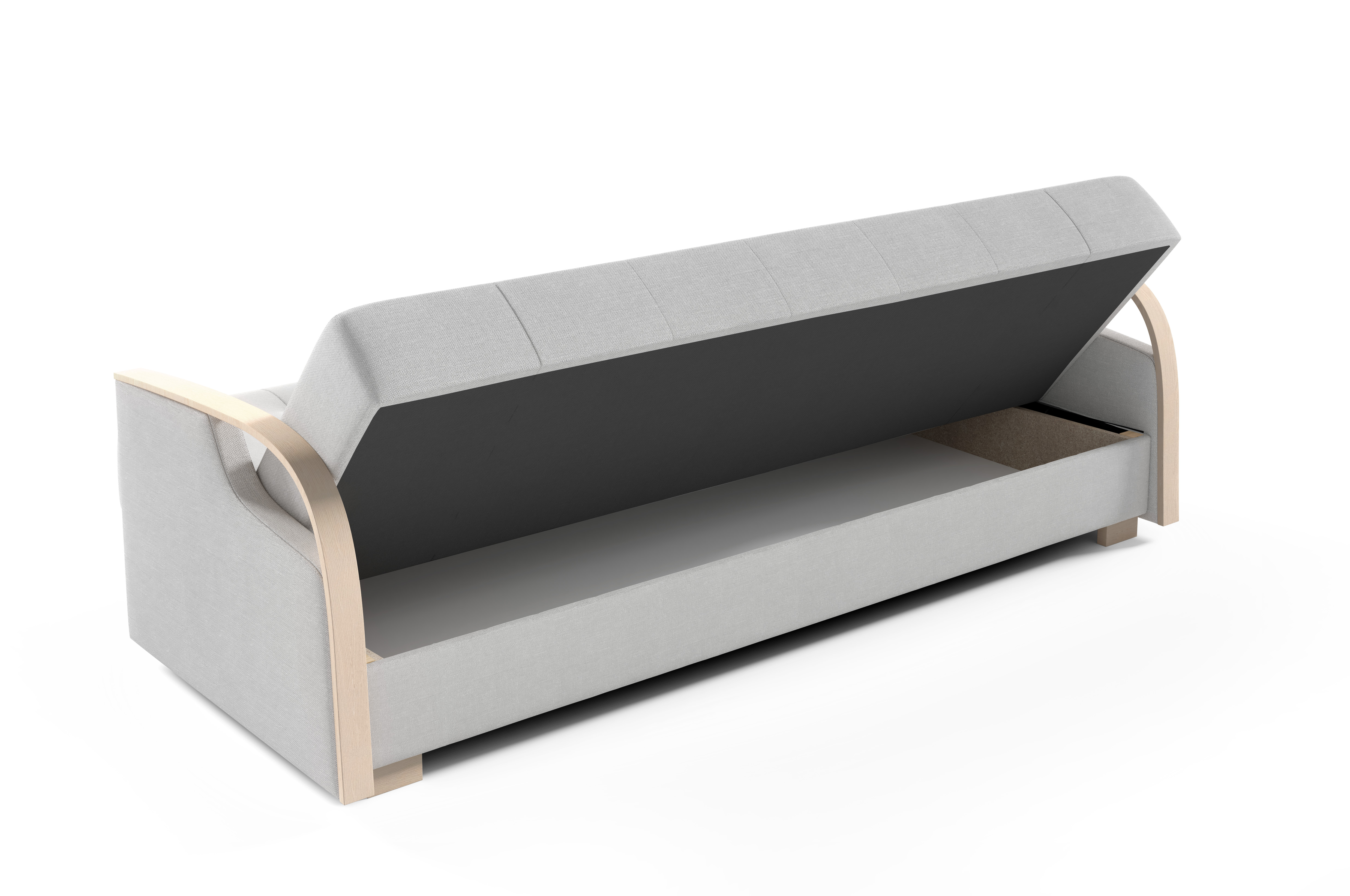 Praktický box schovaný uvnitř – na deky, polštáře i všechny drobnosti, co nechceš mít na očích.