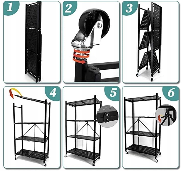 SKLÁDACÍ SKLADOVÝ / KUCHYŇSKÝ REGÁL NA KOLEČKÁCH S 4 POLICEMI