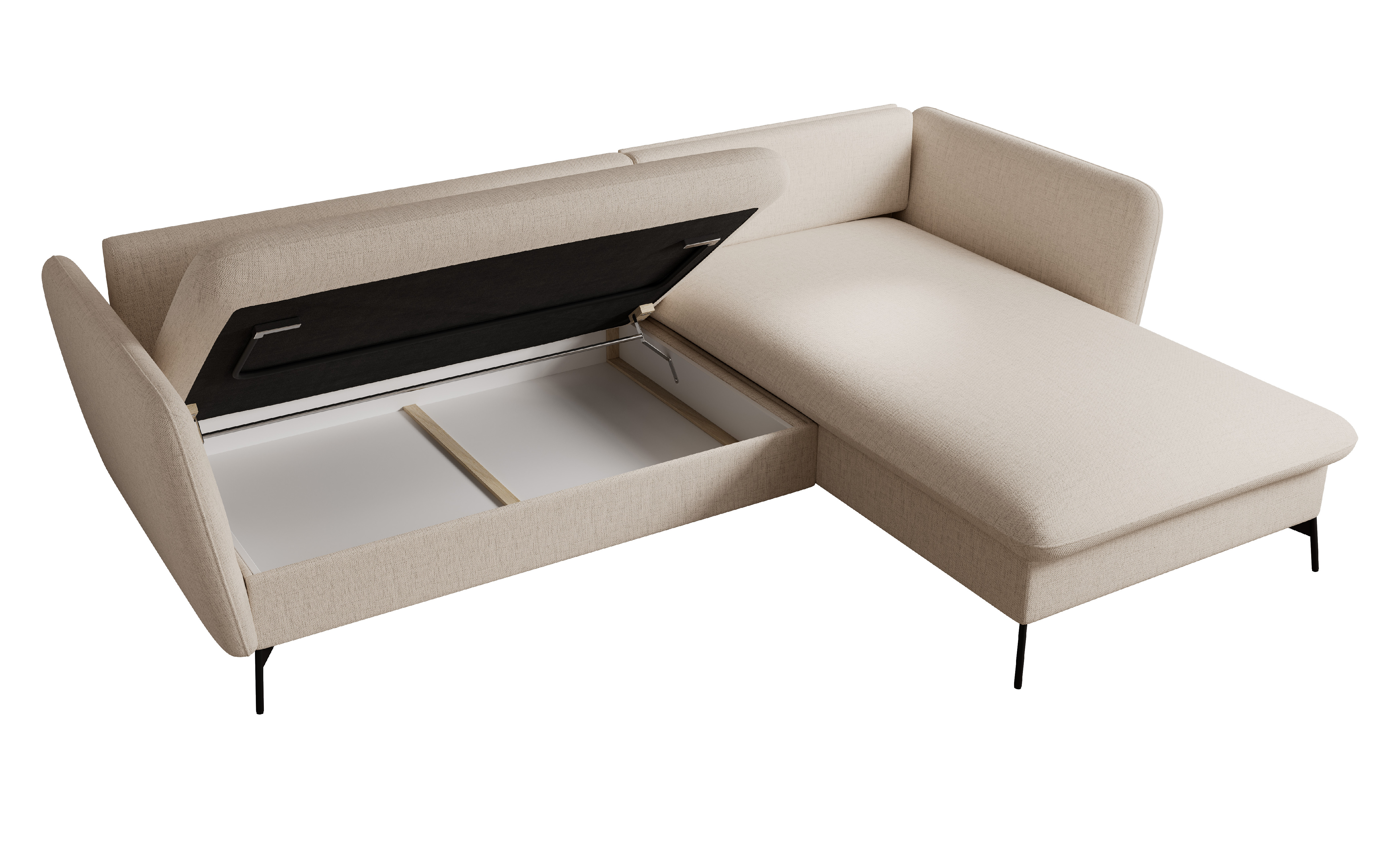 Praktický box schovaný uvnitř – na deky, polštáře i všechny drobnosti, co nechceš mít na očích.