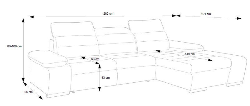 | Celková šířka | 282 cm |