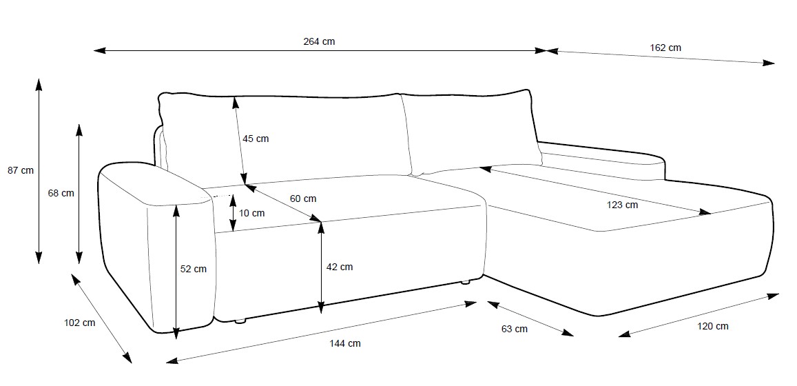 Rohová sedací souprava LATINA je spolehlivým parťákem do každého obýváku. Nabízí pohodlné sezení pro rodinu i návštěvy – a když se večer protáhne, snadno ji rozložíš na prostorné lůžko. Uvnitř se skrývá praktický úložný prostor, kam se vejdou deky, peřiny nebo třeba tvoje oblíbené dobroty. Potahy jsou ušité z tkanin s certifikací OEKO-TEX®, takže si můžeš být jistý, že jsou šetrné k tobě i k přírodě. A aby ladila i s tvým vkusem? Vyber si barvu látky – sedačku nabízíme v několika elegantních variantách. ️ Rohové pohodlí ve tvaru L ️ Rozkládací lůžko Úložný prostor Výběr látky Pohodlí na každý den ✨ Elegantní vzhled RAVEN Jednoduchá montáž V balení najdeš: Doprava až domů Podělte se s námi o Váš názor. Vaše zkušenost pomůže ostatním zákazníkům při výběru té správné postele pro jejich pohodlný spánek. Postel je dodávána bez matrace, lůžkovin a dekorací zobrazených na ilustračních fotografiích. Napište nám, rádi poradíme s čímkoli, co vás zajímá.Pohodlí ve tvaru L - jako L(áska) k odpočinku