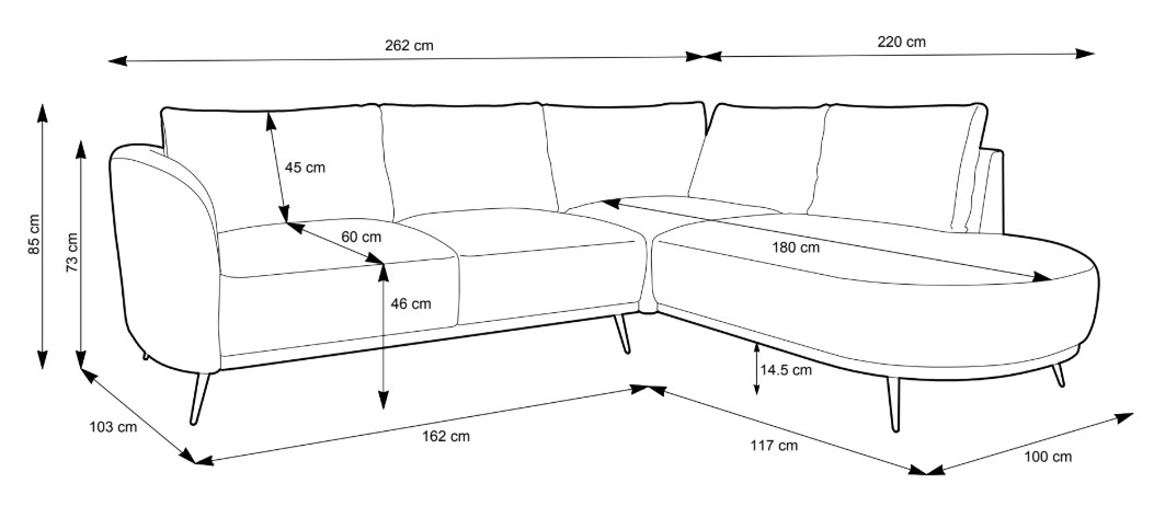 Rohová sedací souprava SALAMANCA je spolehlivým parťákem do každého obýváku. Nabízí pohodlné sezení pro rodinu i návštěvy – a když se večer protáhne, snadno ji rozložíš na prostorné lůžko. Uvnitř se skrývá praktický úložný prostor, kam se vejdou deky, peřiny nebo třeba tvoje oblíbené dobroty. Potahy jsou ušité z tkanin s certifikací OEKO-TEX®, takže si můžeš být jistý, že jsou šetrné k tobě i k přírodě. A aby ladila i s tvým vkusem? Vyber si barvu látky – sedačku nabízíme v několika elegantních variantách. ️ Rohové pohodlí ve tvaru L ️ Rozkládací lůžko Úložný prostor Výběr látky Pohodlí na každý den ✨ Elegantní vzhled CURIO Jednoduchá montáž V balení najdeš: Doprava až domů Podělte se s námi o Váš názor. Vaše zkušenost pomůže ostatním zákazníkům při výběru té správné postele pro jejich pohodlný spánek. Postel je dodávána bez matrace, lůžkovin a dekorací zobrazených na ilustračních fotografiích. Napište nám, rádi poradíme s čímkoli, co vás zajímá.Pohodlí ve tvaru L - jako L(áska) k odpočinku