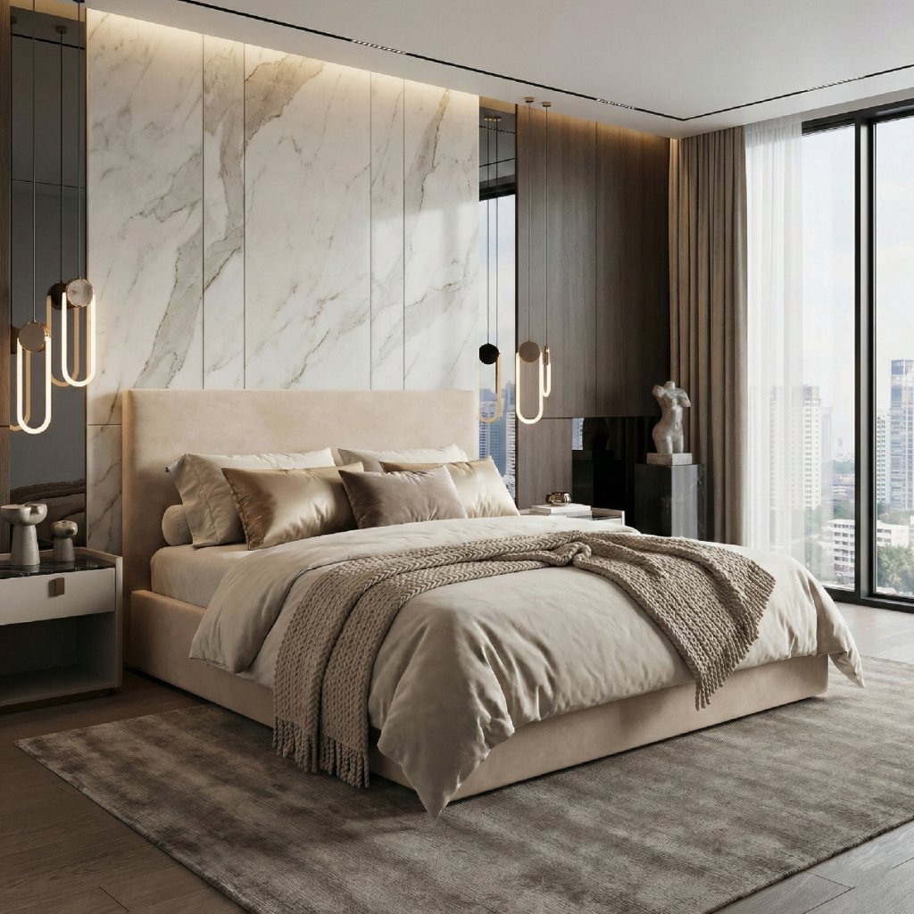 Elegantní čalouněné čelo dodá ložnici útulnost a oporu při čtení nebo večerním odpočinku.