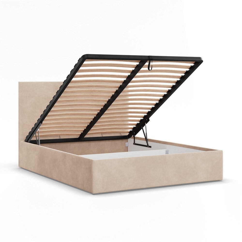 Praktický box schovaný v konstrukci – ideální na lůžkoviny, sezónní oblečení i všechny drobnosti, co chceš mít uklizené.