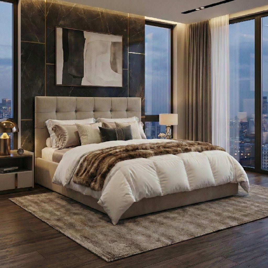 Elegantní čalouněné čelo dodá ložnici útulnost a oporu při čtení nebo večerním odpočinku.