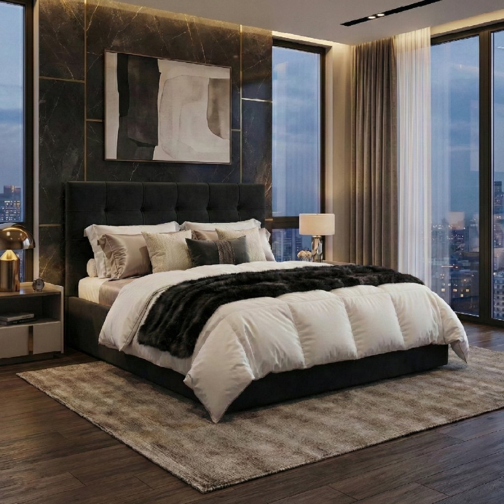 Elegantní čalouněné čelo dodá ložnici útulnost a oporu při čtení nebo večerním odpočinku.