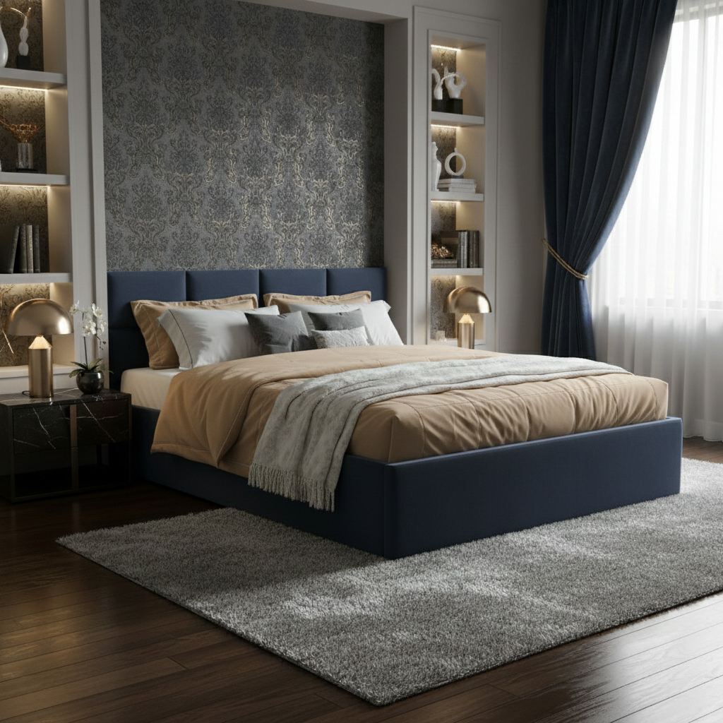 Elegantní čalouněné čelo dodá ložnici útulnost a oporu při čtení nebo večerním odpočinku.