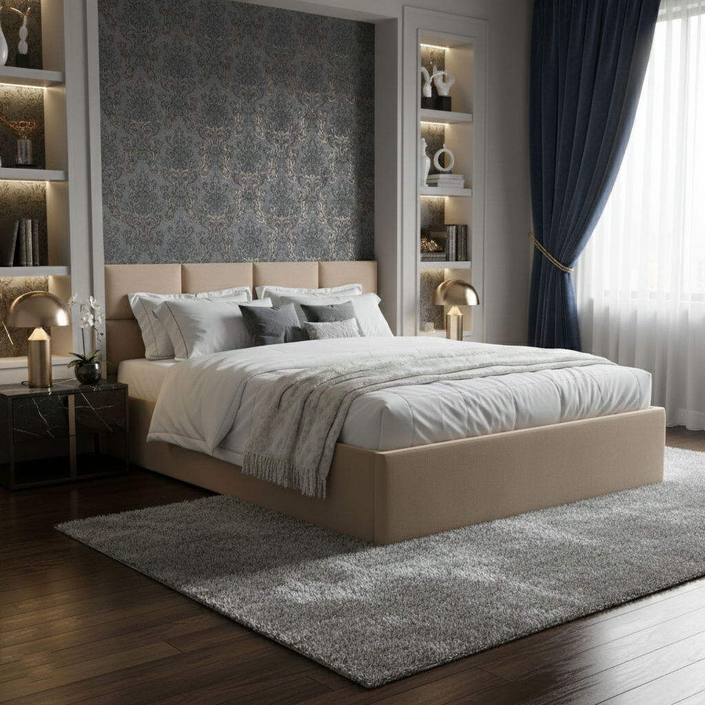 Elegantní čalouněné čelo dodá ložnici útulnost a oporu při čtení nebo večerním odpočinku.