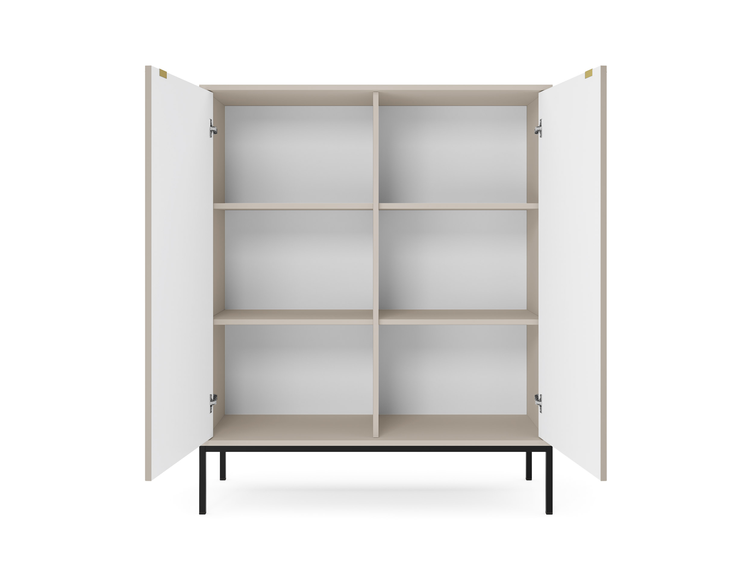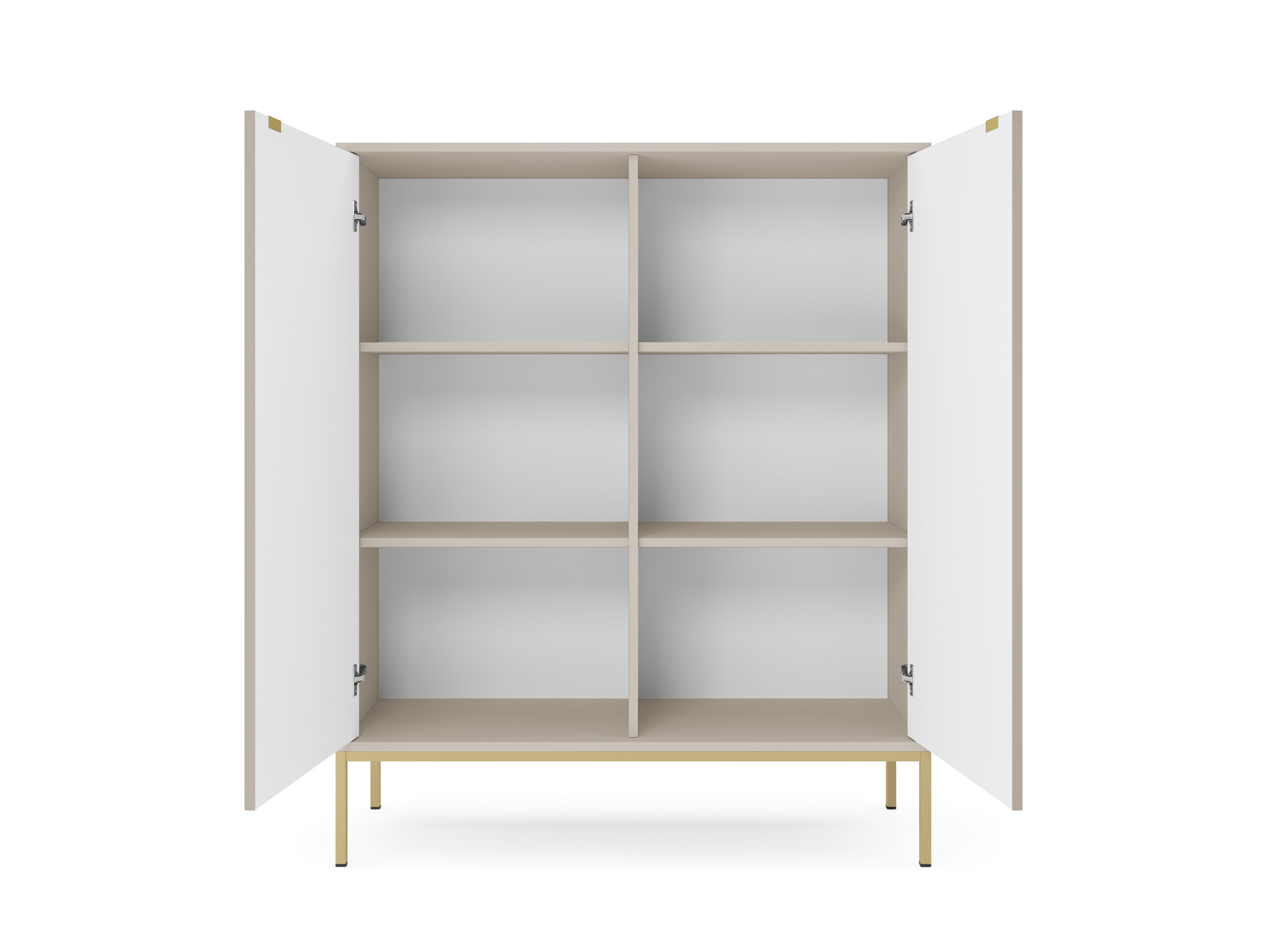 Vertikálně frézovaná čela, decentní úchytky a možnost volby černých nebo zlatých nožek dodávají nábytku moderní šmrnc i nádech luxusu.
