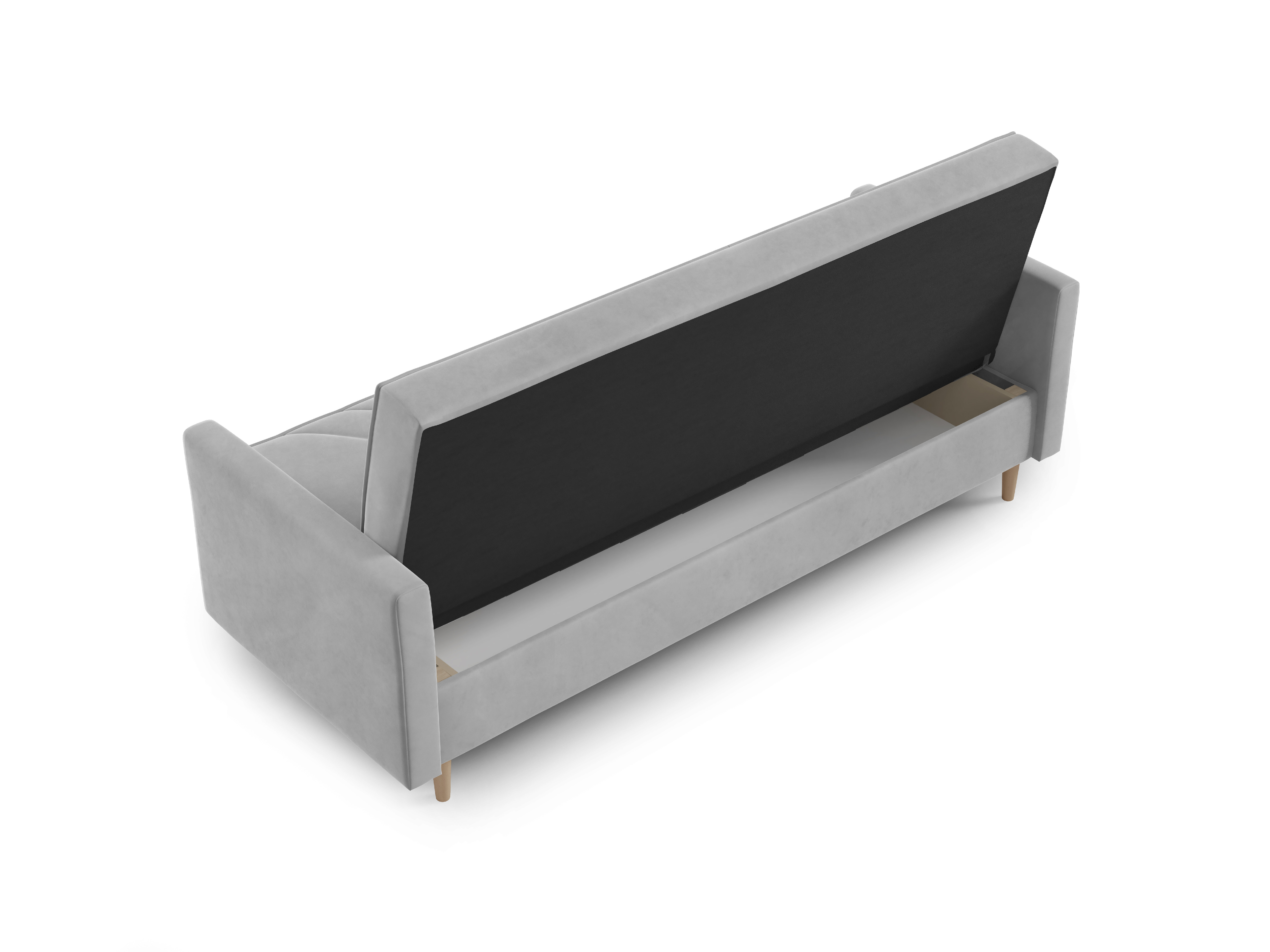 Praktický box schovaný uvnitř – na deky, polštáře i všechny drobnosti, co nechceš mít na očích.