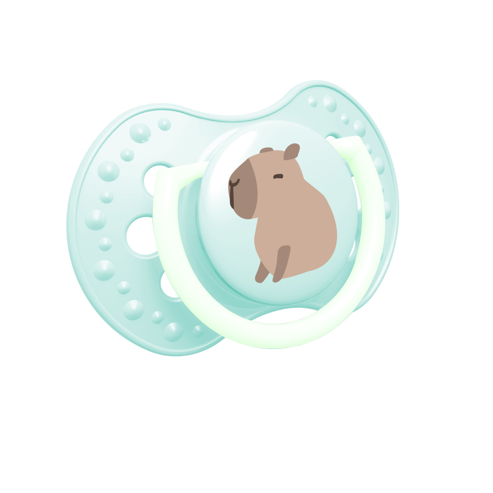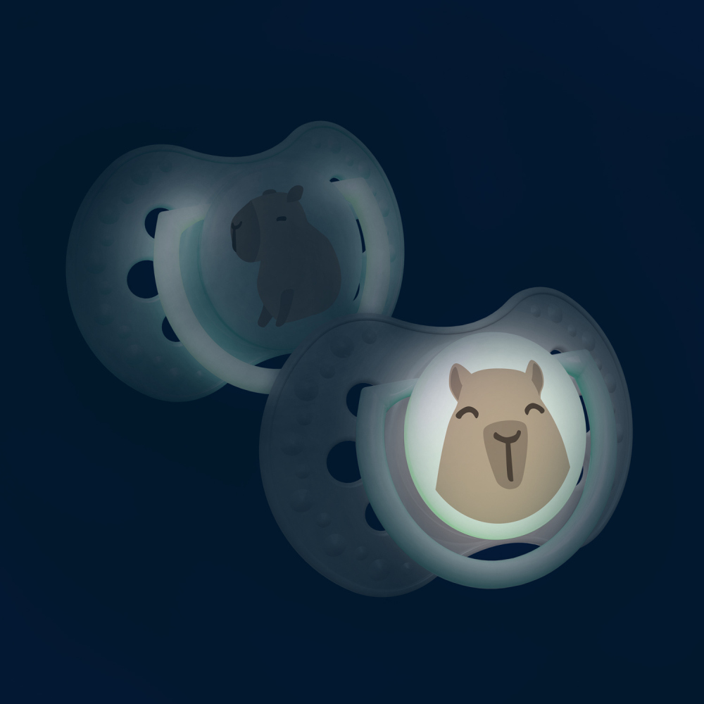 Dudlík má střed a úchytku svítící ve tmě, což usnadňuje jeho hledání v noci.