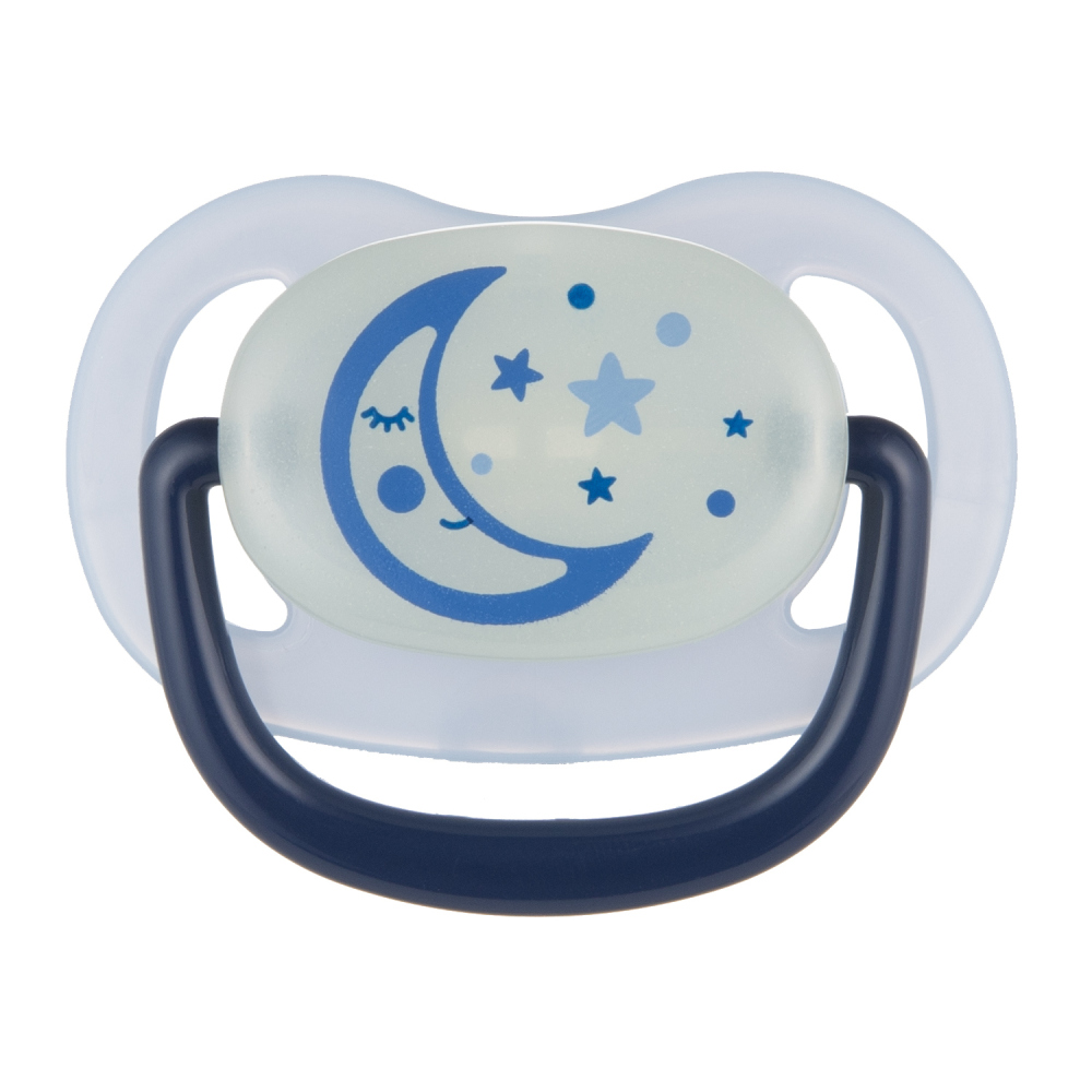 Dudlík NIGHT DREAMS, vyrobený z vysoce kvalitního silikonu bez zápachu. Vybaven ortodonticky tvarovanou sací částí. Díky dírkám ve štítku dudlík nedráždí citlivá dětská ústa. Tlumené světlo v temném disku usnadňuje hledání v noci. Bez BPA. Dostupný v několika barvách.