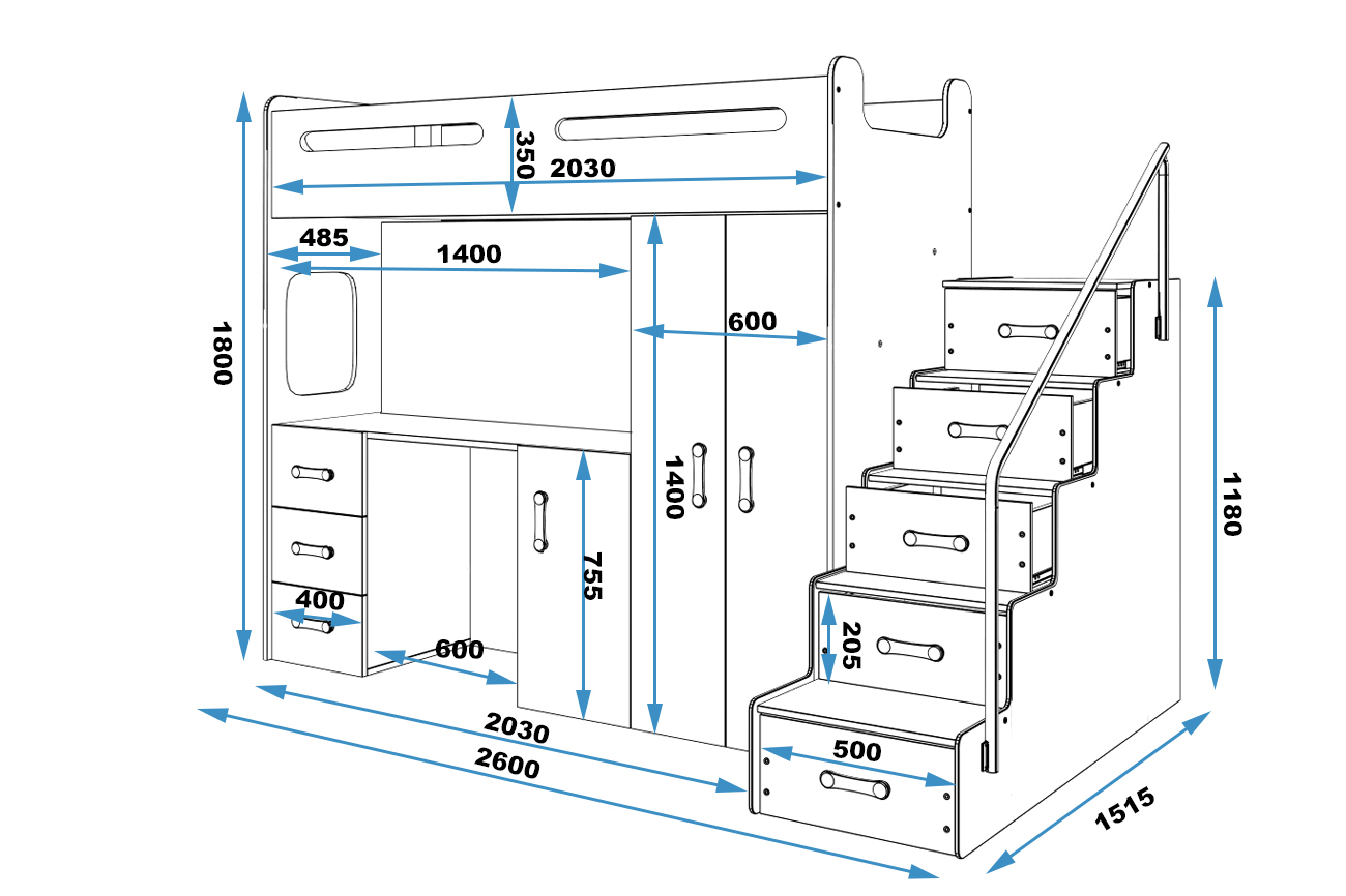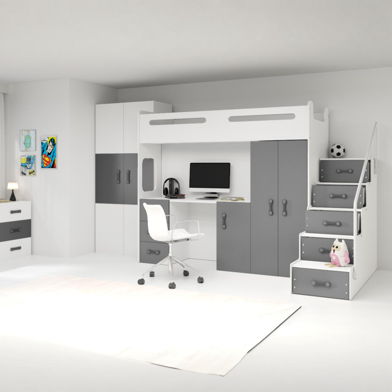 SMB Dětská patrová postel se skříní a stolem MAXI 4, 80x200 cm Barva šuplíku: Grafit