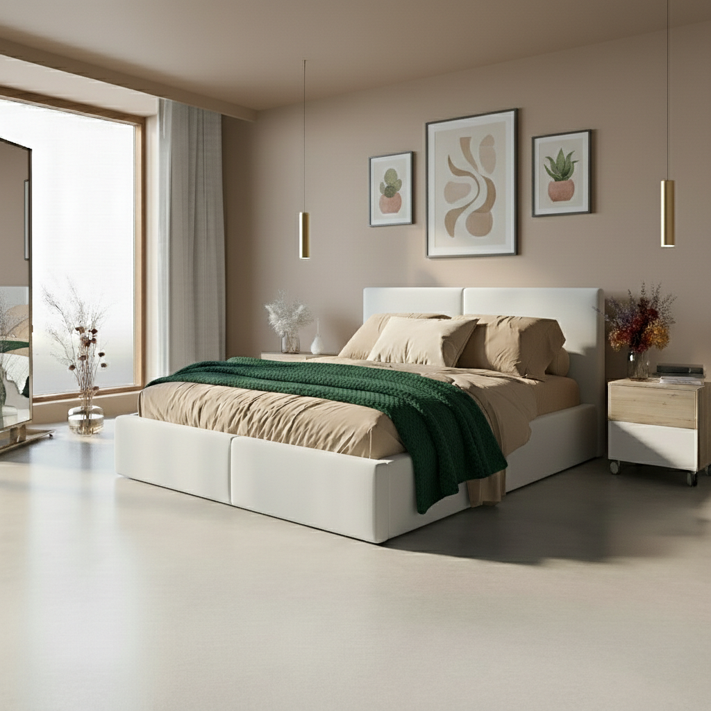 SMB Čalouněná postel HILARY 1, 140x200 cm Barva: TRINITY 00 (bílá)