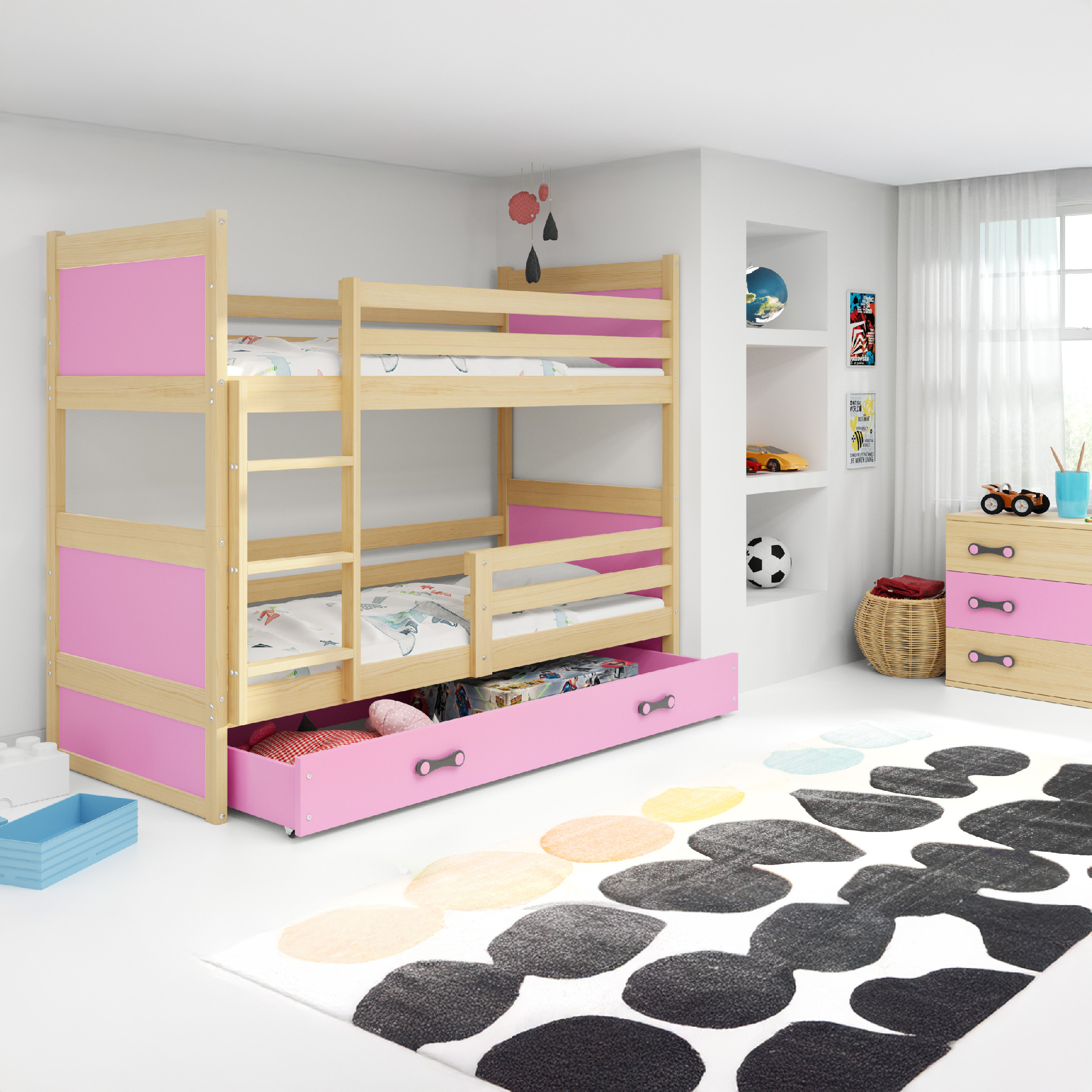 SMB Dětská patrová postel se šuplíkem RICK 3, 90x190 cm Dekor: Grafit, Barva šuplíku: Modrá