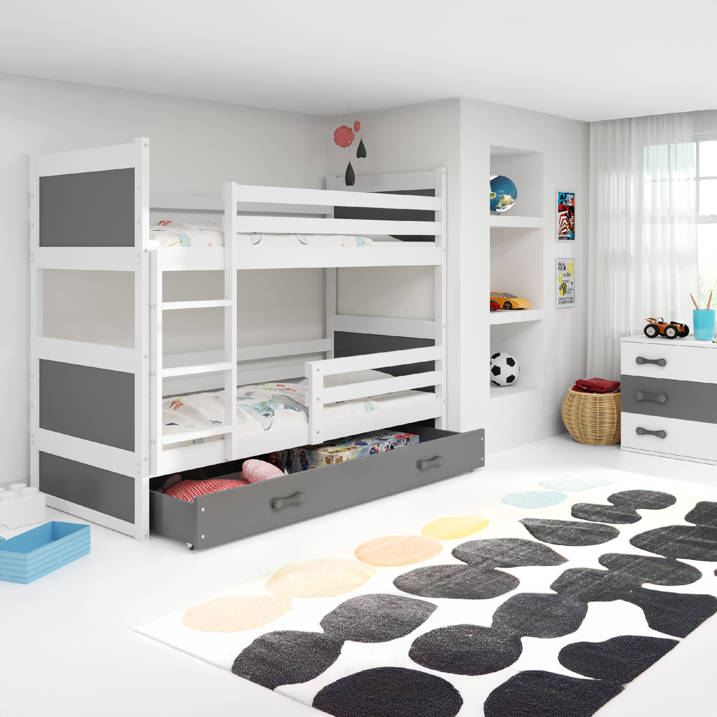 SMB Dětská patrová postel se šuplíkem RICK 3, 90x200 cm Dekor: Grafit, Barva šuplíku: Modrá