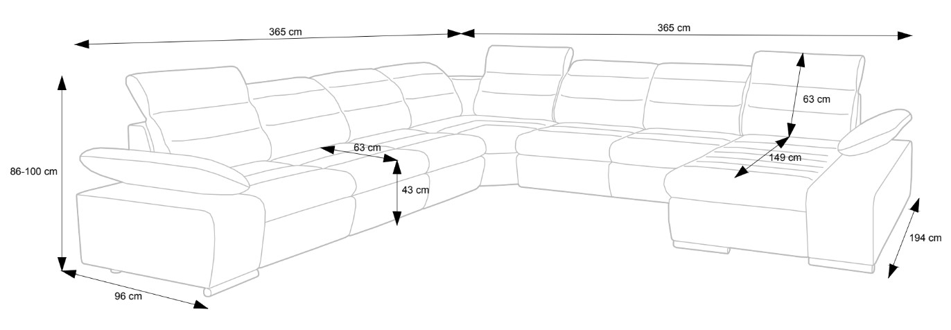 | Celková šířka | 365 cm |