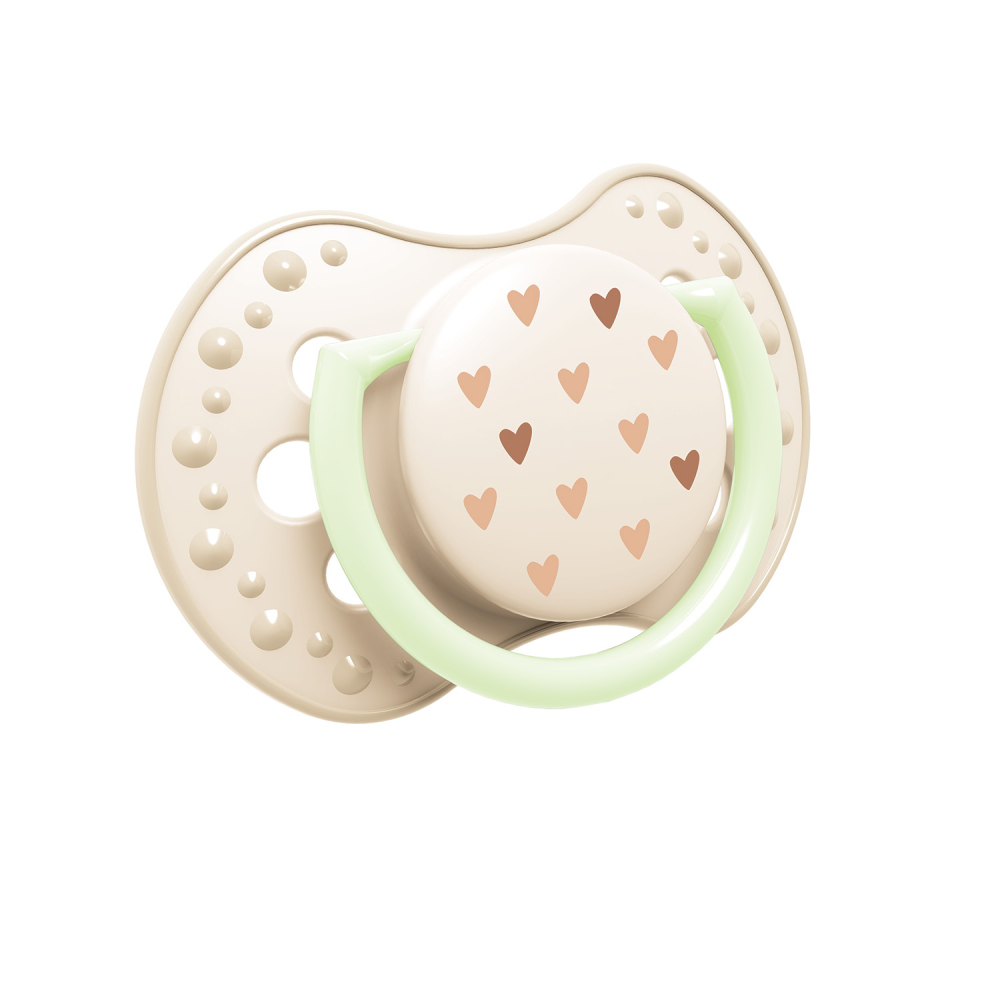 Dudlík má úchytku svítící ve tmě, což usnadňuje jeho hledání v noci.