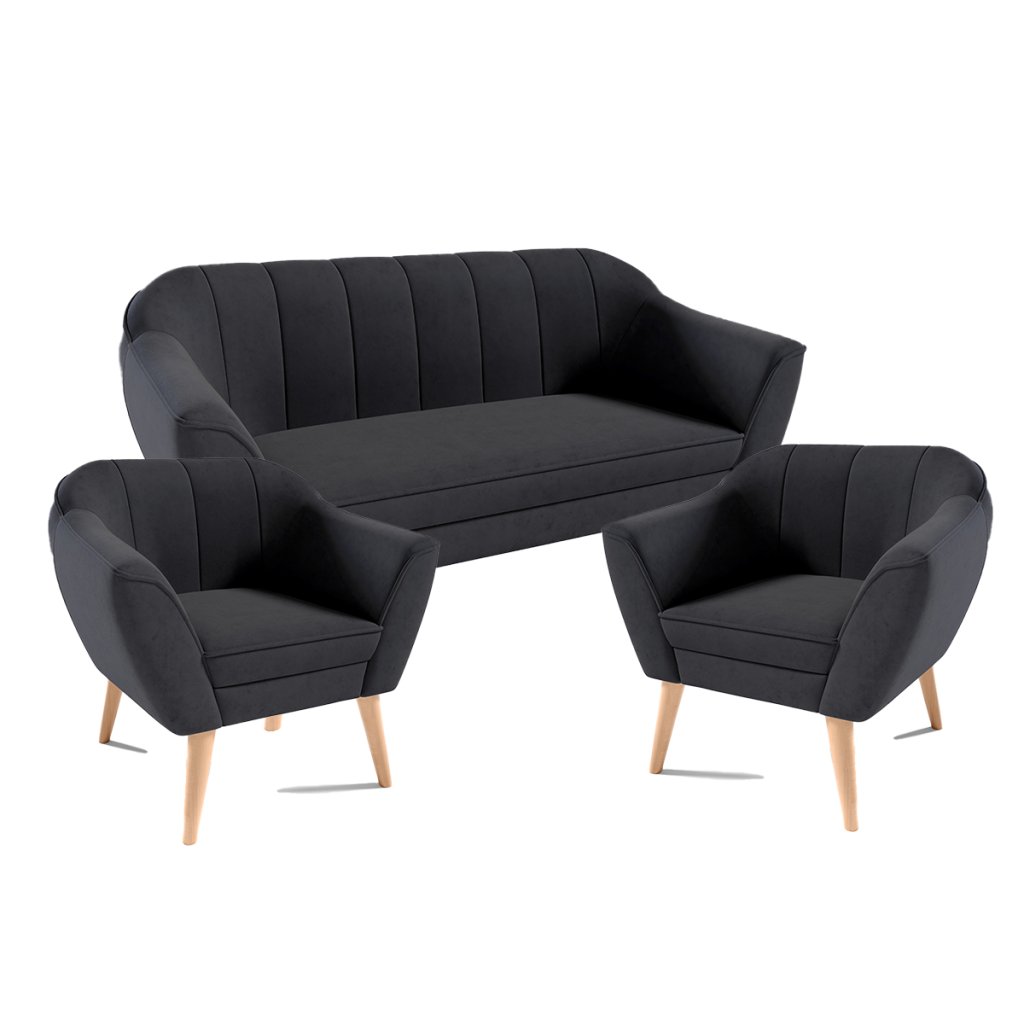 Eka Souprava pohovky a křesel BELLAGIO Velutto Výběr nohou: Černé, Barva látky Velutto: Velutto 15
