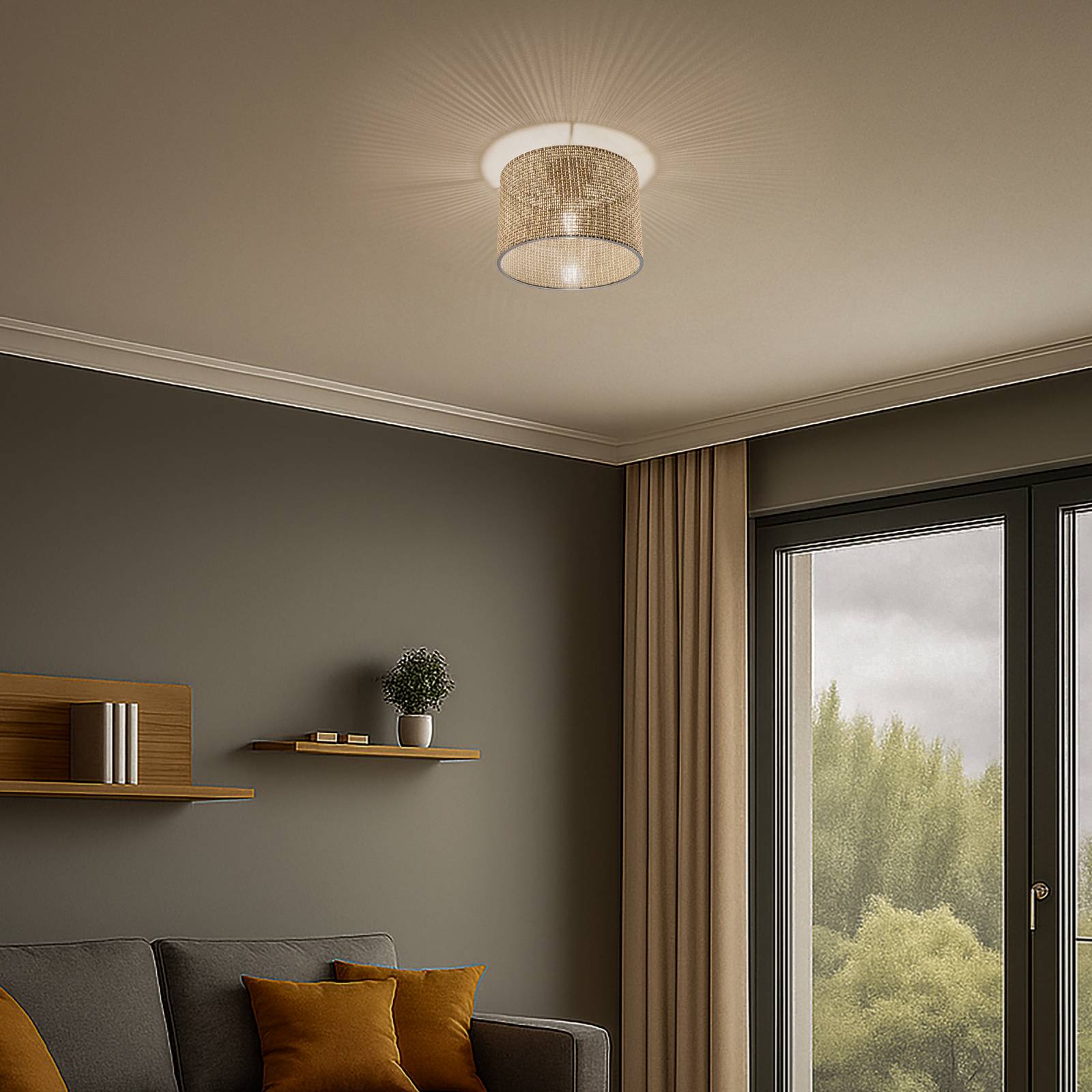 Stropní světlo Goza: elegance a univerzálnost pro obytné prostory Stropní světlo Goza spojuje stylový design s funkční univerzálností. Světlo je vyrobeno z vysoce kvalitní látky a robustního kovu a prezentuje se v atraktivní hnědé barvě s černým vzorem. Tato kombinace dodá každé místnosti, ať už obývacímu pokoji, ložnici nebo chodbě, zvláštní nádech. Lampa vyrobená v Evropě je synonymem kvality a řemeslného zpracování, které se odráží v každém detailu. Další vynikající vlastností stropního světla Goza je jeho stmívatelnost, kterou umožňuje externí stmívač. To umožňuje flexibilní nastavení intenzity světla pro vytvoření požadované atmosféry. Světlo není jen funkčním prvkem, ale také stylovým doplňkem, který dodá každé místnosti individuální nádech.