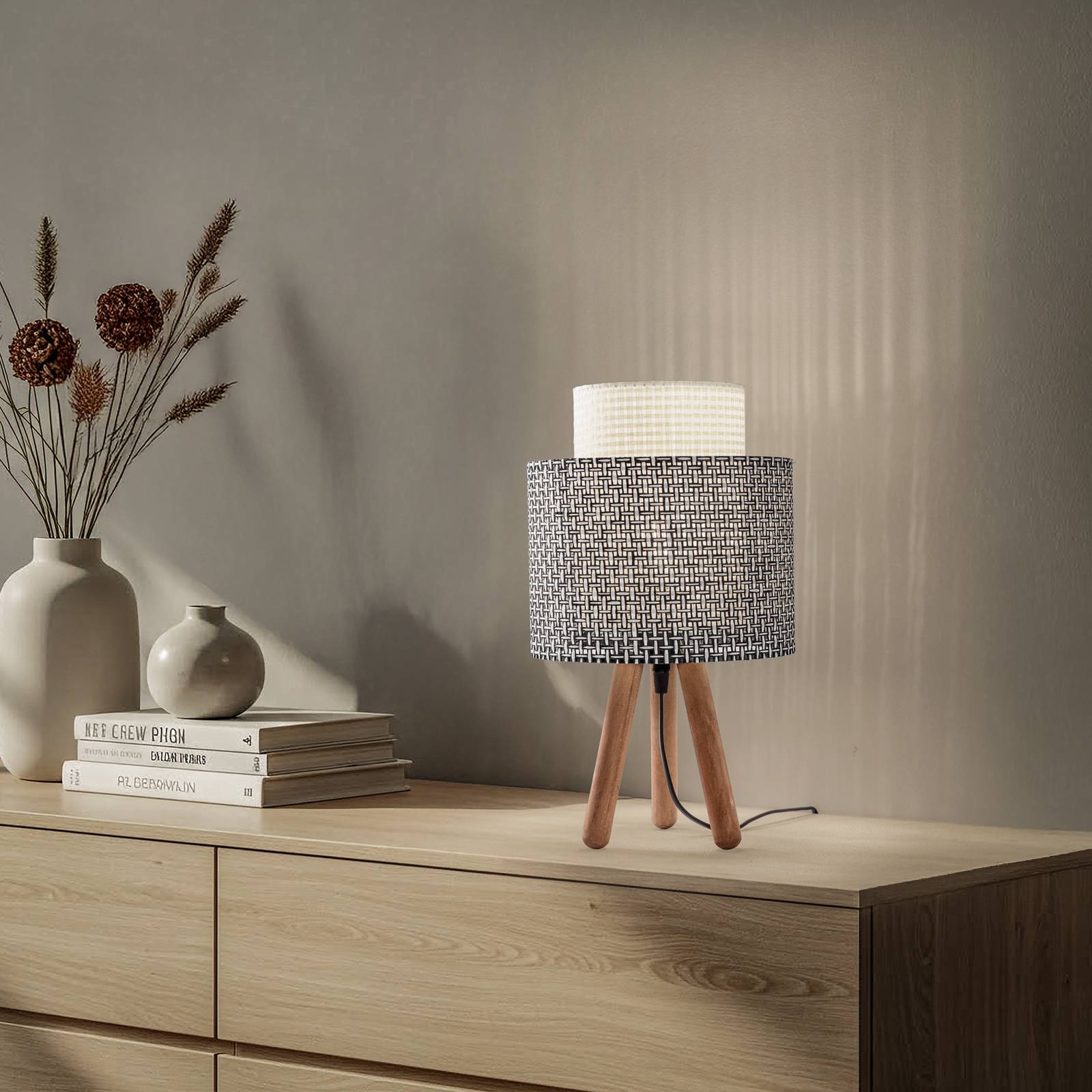 MODELSA Stolní lampa Dona, černobílý vzor/barva dřeva, látka