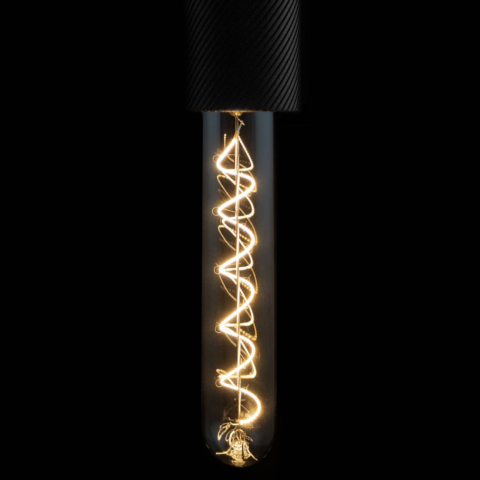 LED žárovka Elegant Line E27 5W vlákno, trubice, 2 700 K, stmívatelné Tato LED žárovka ve tvaru trubice je produktem řady ELEGANT Line od SEGULA. Tato série žárovek se vyznačuje zdokonaleným, tenkým LED vláknem, které se elegantně vine v čiré skleněné baňce. Žárovka vyzařuje teplou bílou světlo, je stmívatelné pomocí mnoha běžných stmívačů a je zvláště vhodná pro svítidla bez stínidla na lampu. - teplá barva světla 2 700 K plně stmívatelné pomocí mnoha běžných stmívačů na sestupné hraně - tenký spirálovitý vlákno s patentovanou technologií Soft Filament - energeticky účinná a úsporná