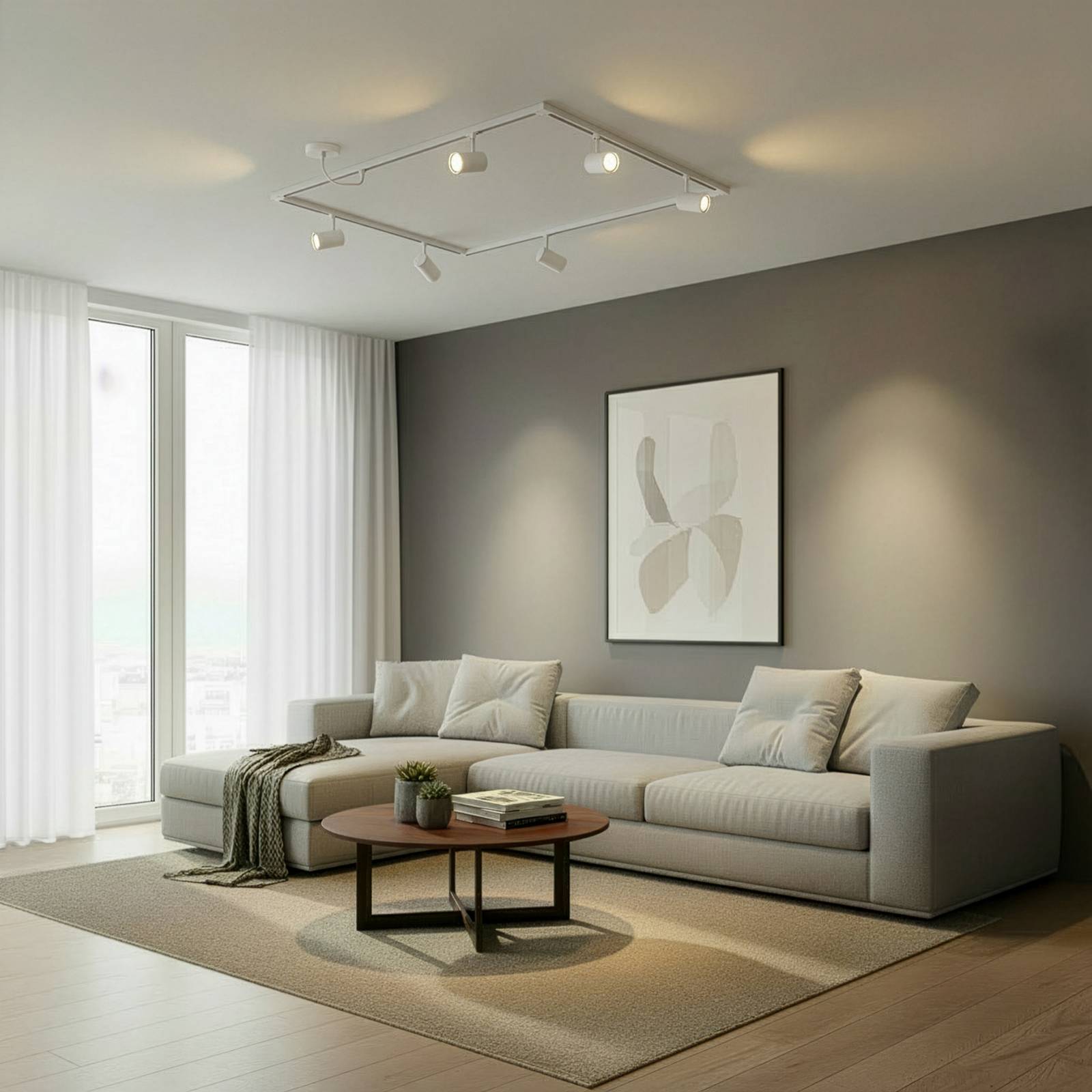 Praktická kompletní sada – kolejnicový systém Lindby Linaro – flexibilita pro individuální řešení osvětlení Tato kompletní sada kolejnicového systému Linaro od Lindby kombinuje moderní design s vysokou funkčností. Elegantní bílý povrch a vysoce kvalitní zpracování z hliníku dodávají systému nadčasový vzhled, který se hladce začlení do různých stylů interiéru. Díky svému tvaru písmene O a šesti bodovkám GU10 poskytuje rovnoměrné a cílené osvětlení, které je ideální pro chodby nebo pracovny. Vícedílná sada obsahuje vše, co potřebujete, abyste si mohli přímo vyzkoušet ten nejlepší možný zážitek z osvětlení. Díky modulární konstrukci, skládající se z několika kolejnic, středových napáječů a spojek, umožňuje systém flexibilní přizpůsobení různým prostorovým podmínkám. Promyšlená konstrukce zajišťuje snadnou instalaci a spolehlivé napájení. Systém kolejnic Linaro je ideální volbou pro všechny, kteří kladou důraz na stylové a funkční řešení osvětlení. Obsah balení: 2 x středový napájecí zdroj, 4 x 50 cm kolejnice, 4 x 90° spojka, 2 x 1 m kolejnice, 6 x GU10 bodovky, 1 x napájecí zdroj