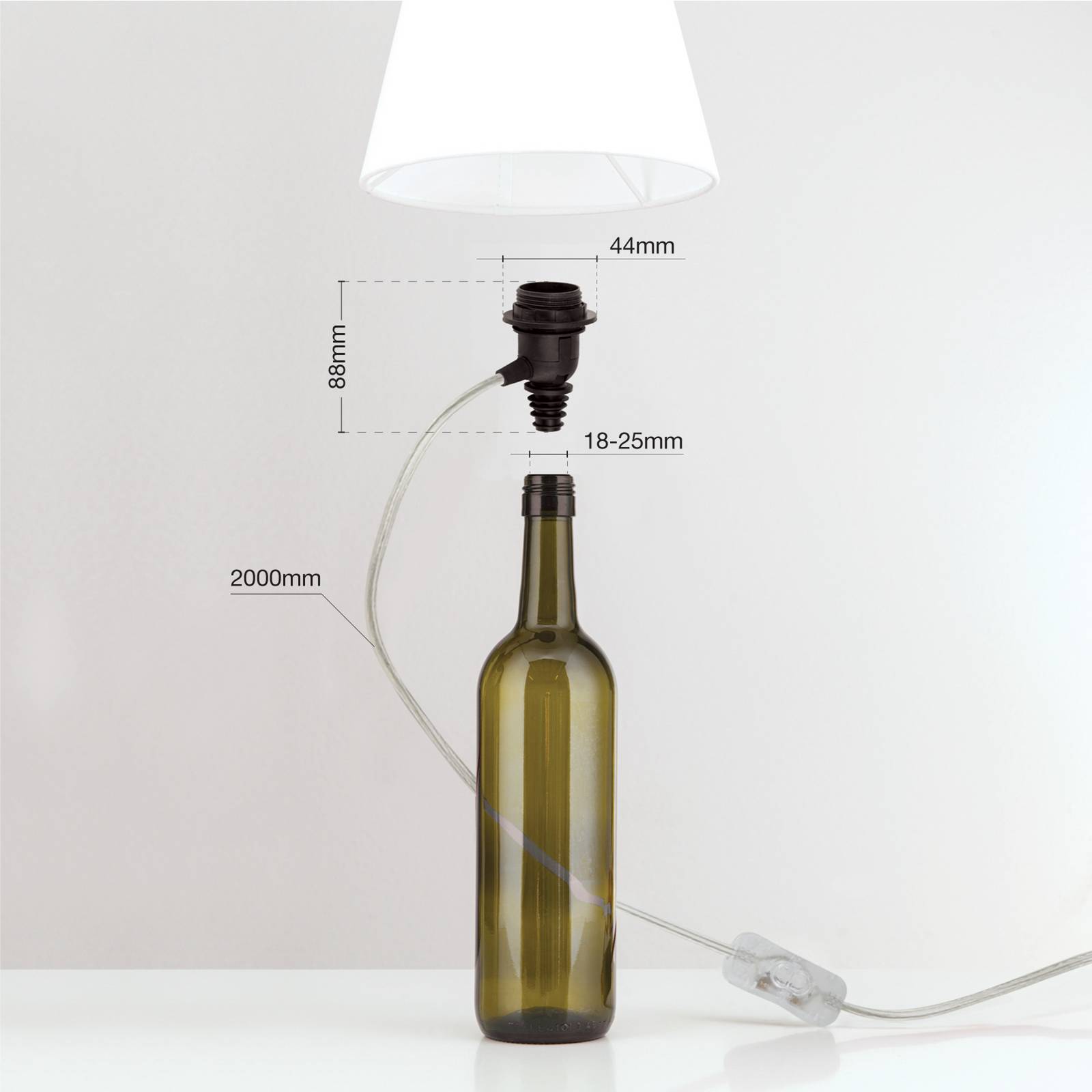 Žárovková patice E27 BOTTLE s průhledným kabelem pro všestranné osvětlení v moderním interiéru Žárovková objímka E27 BOTTLE kombinuje moderní design s funkční univerzálností. Průhledný kabel a stylové barevné provedení v černé a průhledné barvě vytvářejí harmonické spojení elegance a jednoduchosti. Vysoce kvalitní kombinace materiálů z PVC a textilu zajišťuje dlouhou životnost a atraktivní vzhled, který se dokonale hodí do různých stylů interiéru. Závit je ideální pro použití v obývacím pokoji, jídelně, ložnici nebo chodbě a umožňuje flexibilní osvětlení. Ať už jako decentní doplněk nebo jako součást kreativního osvětlovacího konceptu – tento závit nabízí nespočet možností, jak individuálně navrhnout interiér a vytvořit zvláštní atmosféru.