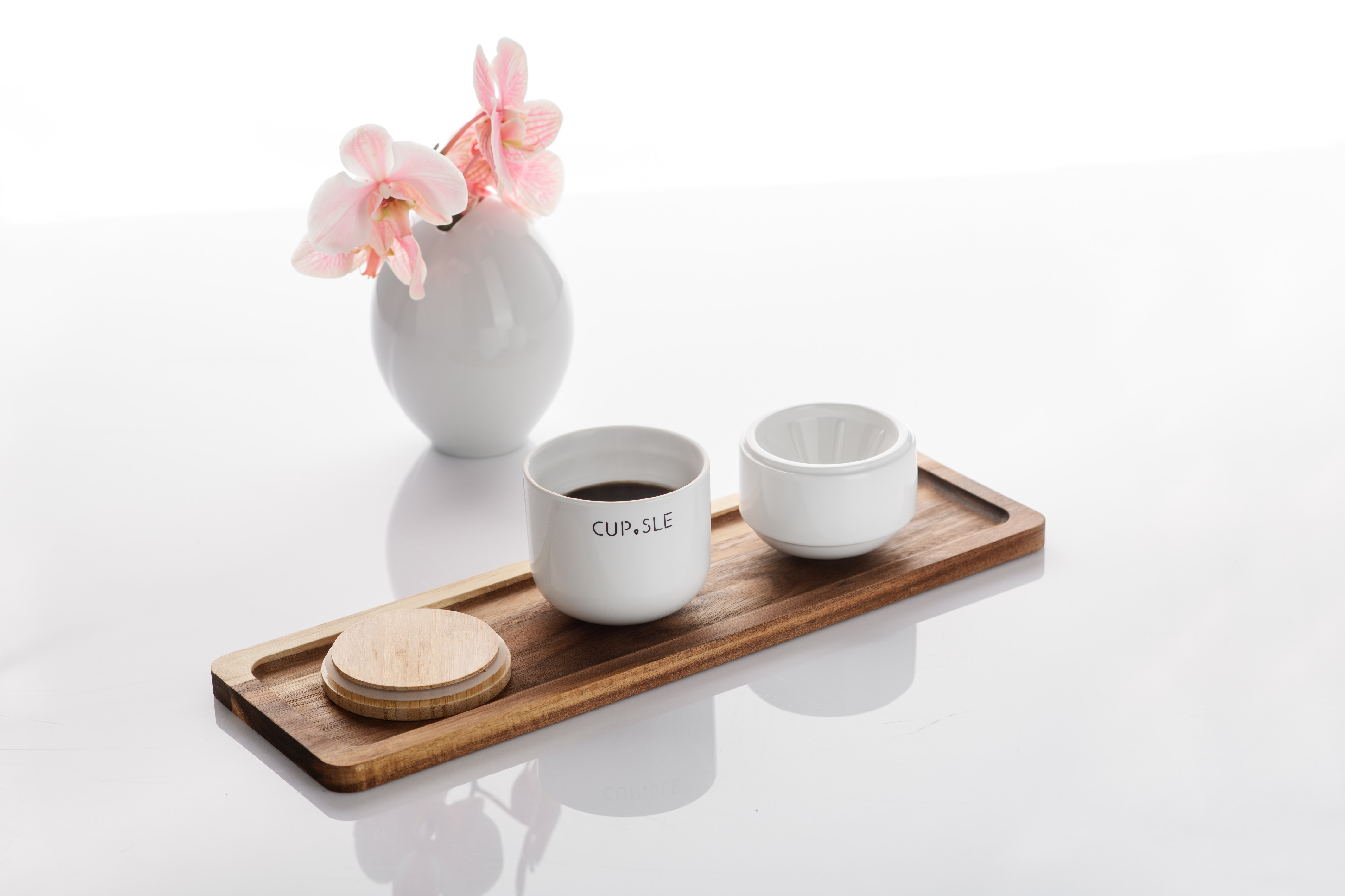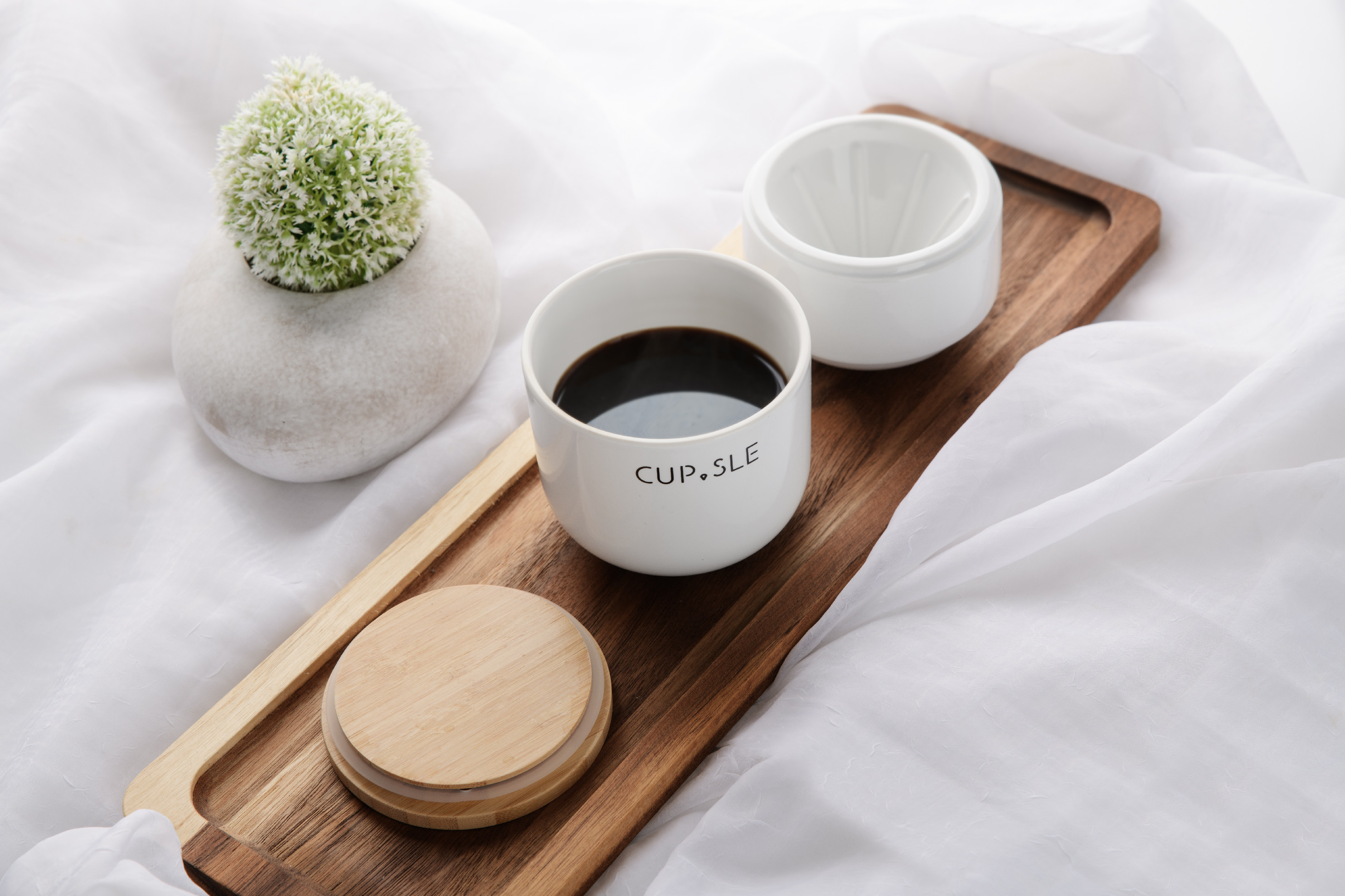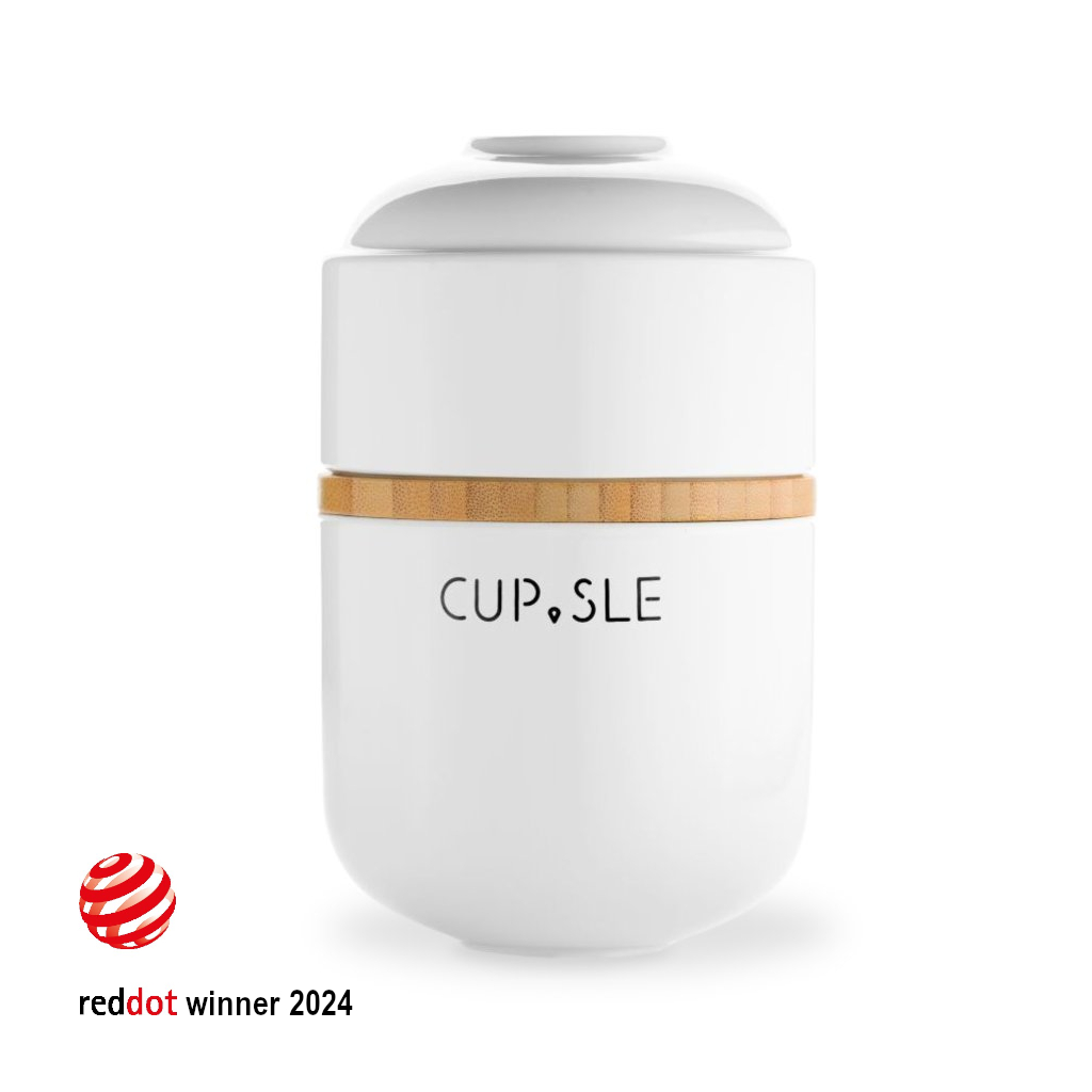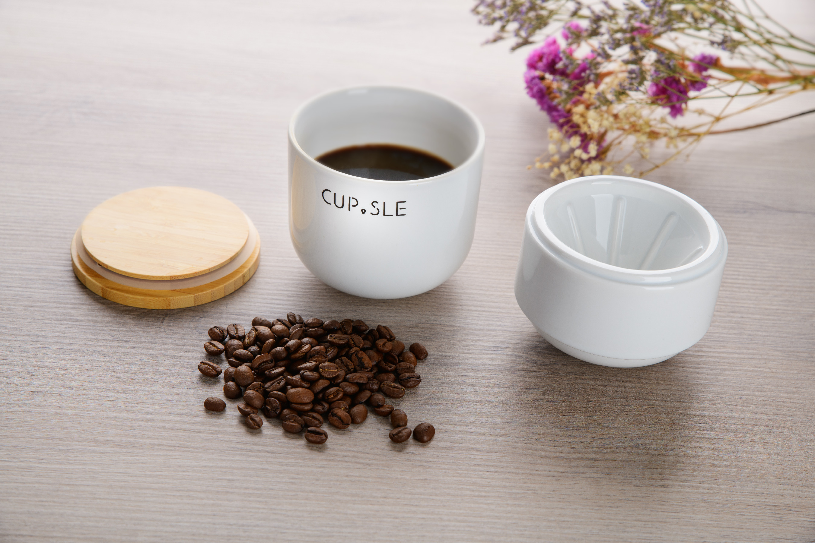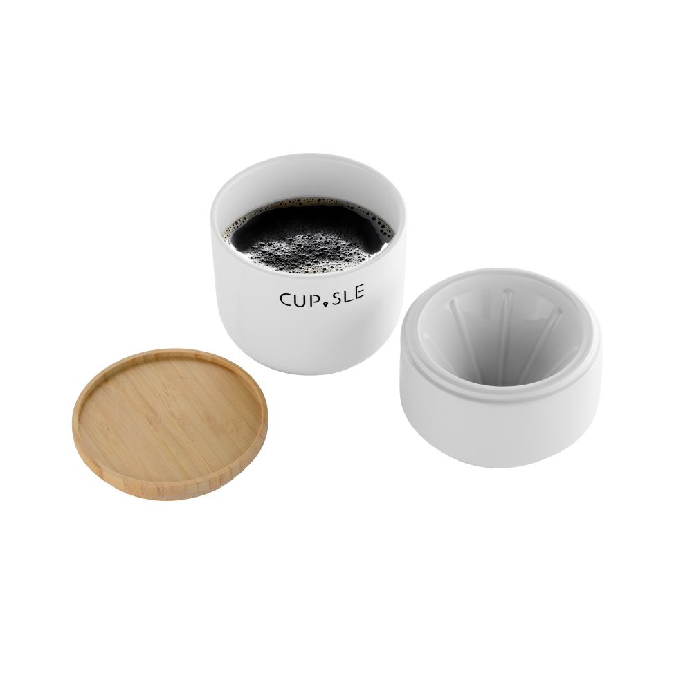 Luxusní set dripperu a šálku je vyroben z porcelánu a je doplněn víčkem z bambusu. To zachová vaši kávu déle teplou a je zespodu opatřeno silikonovým těsněním, aby na šálku perfektně drželo.