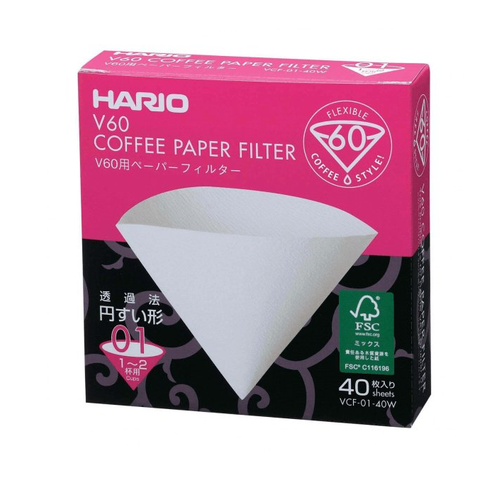Hario V-60 kávové filtry, vel. 01, (40 ks), bílé