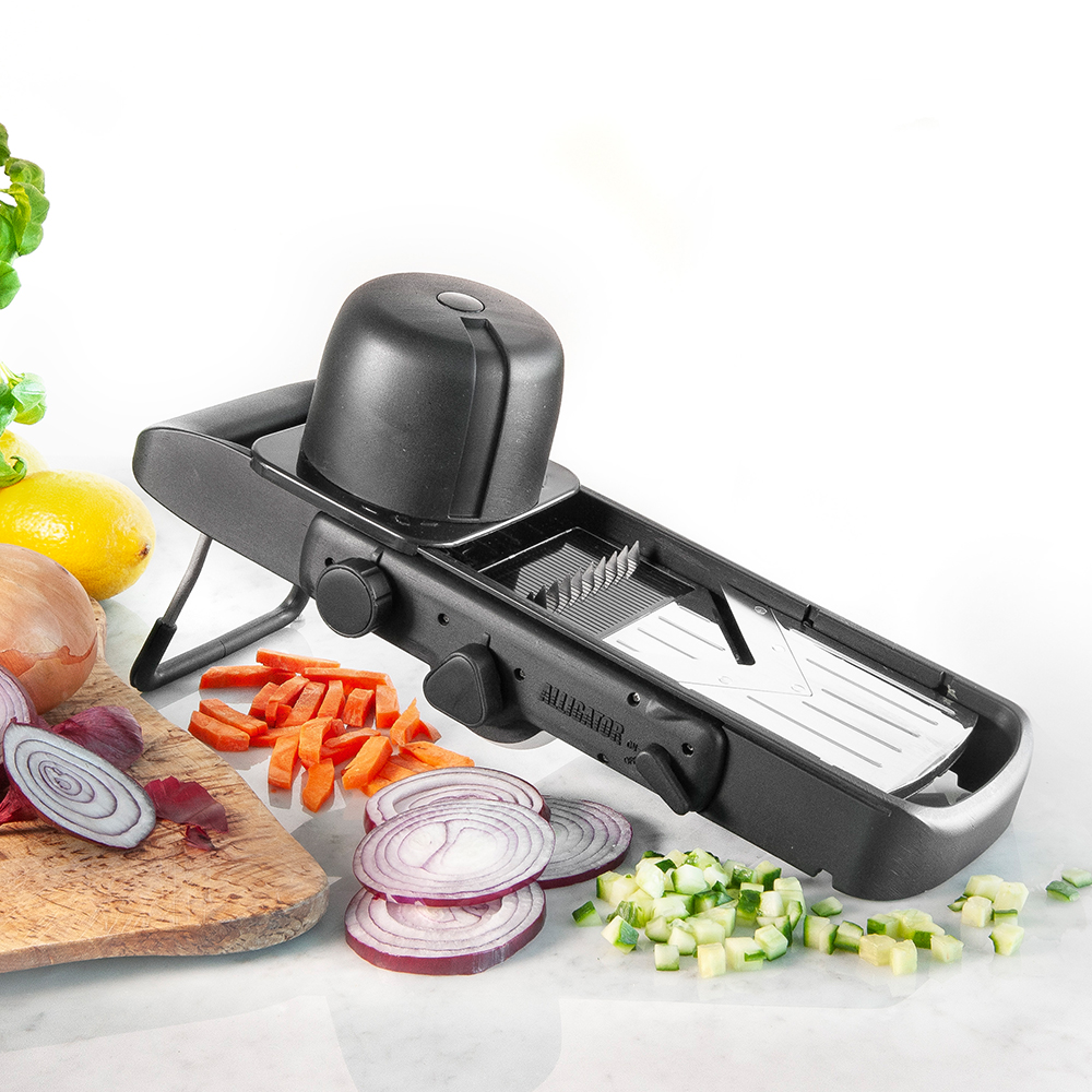 Zrychlete přípravu zeleniny a ovoce a získejte stejně přesné výsledky pokaždé. Mandolína ALLIGATOR zvládne plátky, julienne proužky i kostky (čtverec nebo „diamant“) – ideální na saláty, hranolky, přílohy i meal prep.