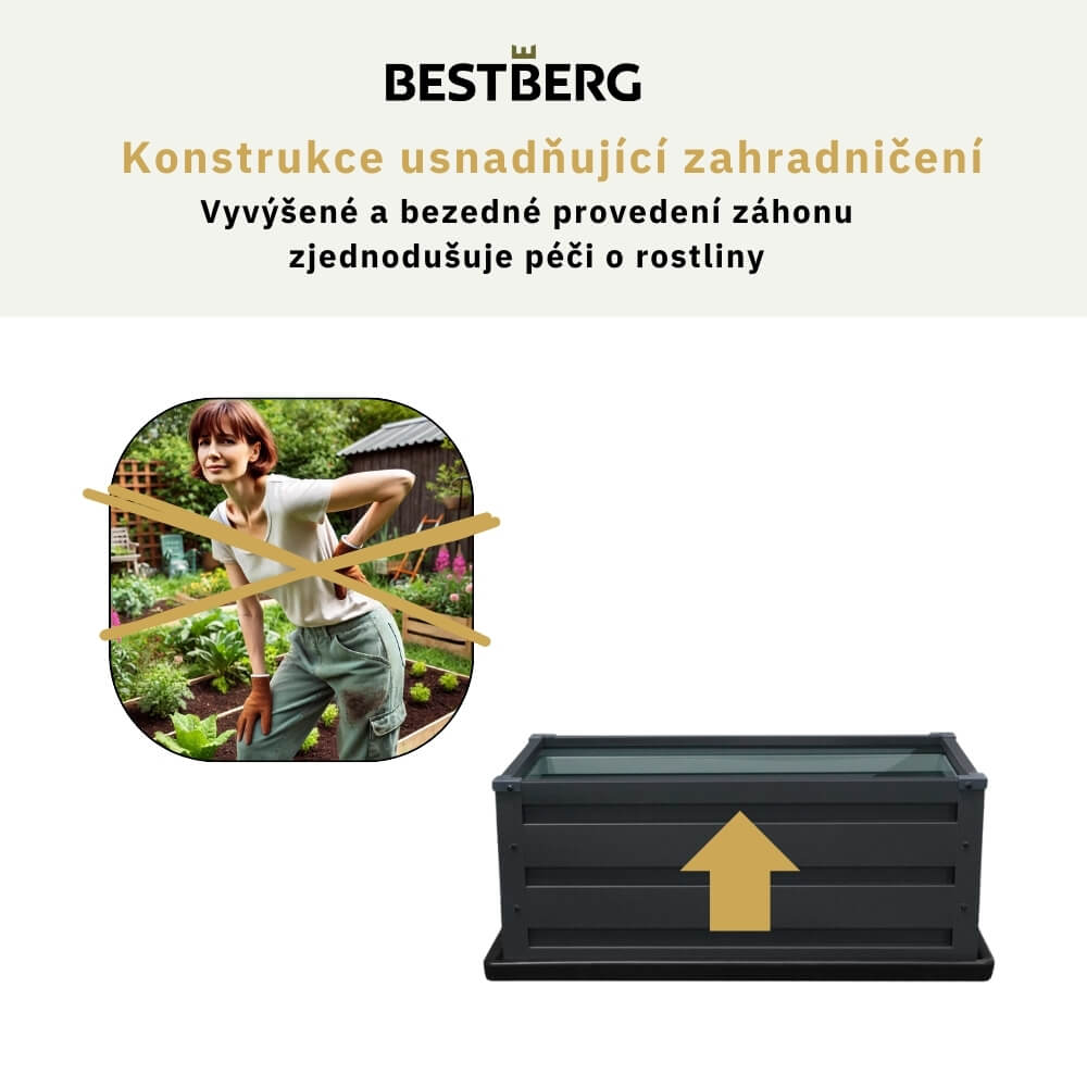 Zahradničení nikdy nebylo jednodušší. S vyvýšeným záhonem BestBerg získáte bezúdržbový a elegantní záhon pro pěstování. Vyvýšený záhon promění každý kousek prostoru ve vaši osobní zahrádku.