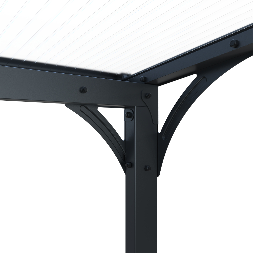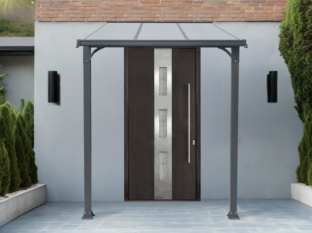 Moderní design s antracitovou práškovou barvou dodává vašemu domu elegantní a stylový vzhled. Tato pergola se snadno integruje do různých architektonických stylů a zvyšuje celkovou estetiku vašeho domova. Je to skvělý způsob, jak vylepšit první dojem, který váš dům zanechává. Díky ochraně před přímým vystavením povětrnostním vlivům výrazně prodlužuje životnost vašich dveří. Snížením opotřebení a poškození způsobeného deštěm, sněhem nebo sluncem, přístřešek pomáhá udržet vaše dveře v dobrém stavu po delší dobu.