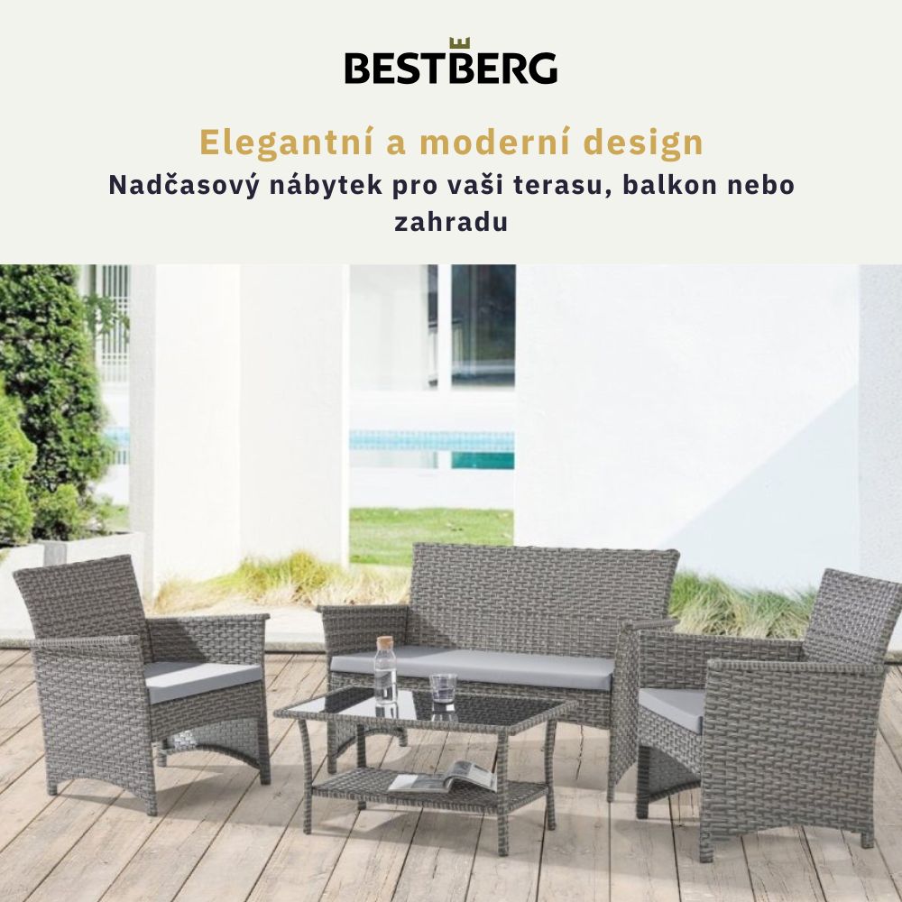 4dílná sada zahradního ratanového nábytku BestBerg Cordova BBRF-1008G / šedá