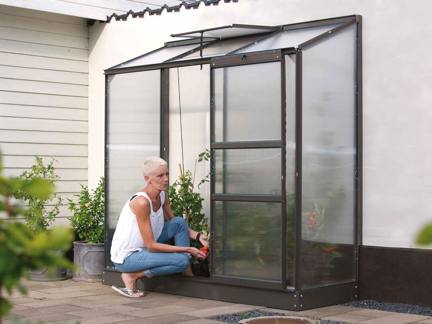Skleník je určen k montáži ke zdi – zadní stěna není součástí konstrukce.