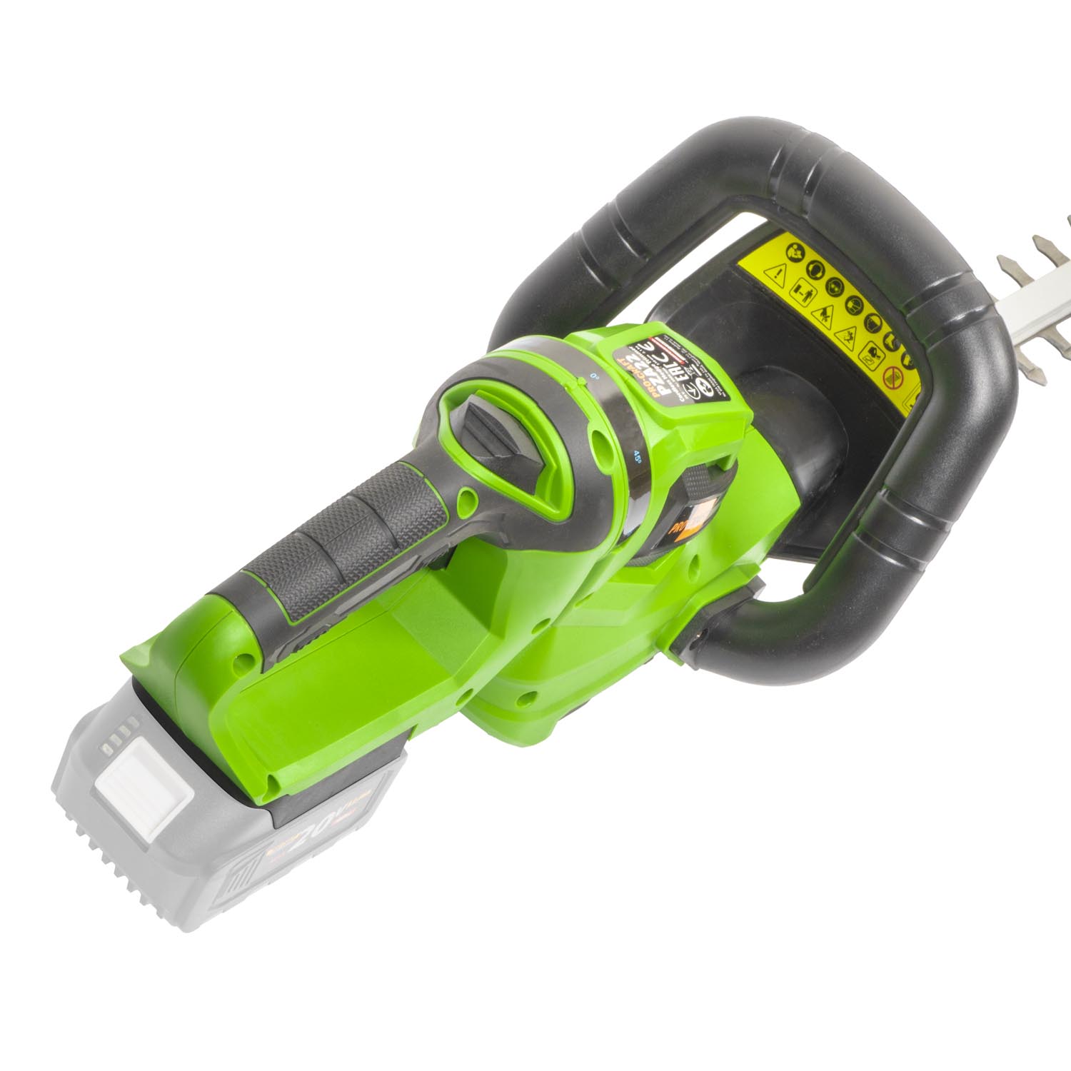 AKU plotostřih s otočnou rukojetí je určen pro stříhání a tvarování keřů a živých plotů. Ergonomická oblouková rukojeť usnadní a zajistí pohodlí dlouhou práci. Velký počet zdvihů a kvalitní oboustranné nože zaručují rychlý a přesný řez. Stroj je dodávaný v kartonu bez akumulátoru a nabíječky.