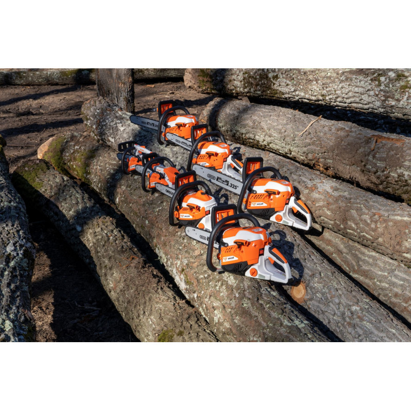 Odolná a snadno ovladatelná řetězová pila pro kácení malých a středně velkých stromů, pro čištění od větví a náročnou péči o stromy, jakož i pro přípravu palivového dříví. Pila je vybavena profesionální lištou Oregon a karburátorem Walbro, zajišťuje ideální kombinaci vysokého výkonu a optimální ergonomie. Jednoduchá manipulace, nízká hmotnost, snadné startování, snížená spotřeba paliva. Řetězová pila RM350 patří do kategorie motorových řetězů ve střední výkonové třídě a lze ji použít pro různé účely. Je vhodná pro prořezávání stromů, stavební a palivové dříví.