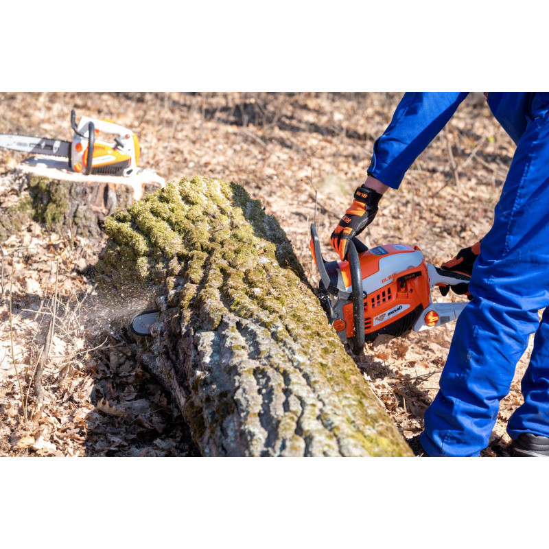 Řetězová pila s extrémně vysokým výkonem pro profesionální prořezávání a zpracování velkých stromů, pro řezání tvrdého dřeva, pro práce ve stavebnictví, pro řezání palivového dřeva a pro lesnictví. Pila je vybavena profesionální lištou Oregon a karburátorem Walbro, zajišťuje ideální kombinaci vysokého výkonu a optimální ergonomie. Vysoký řezný výkon, robustní provedení, lehké startování, odolná konstrukce.