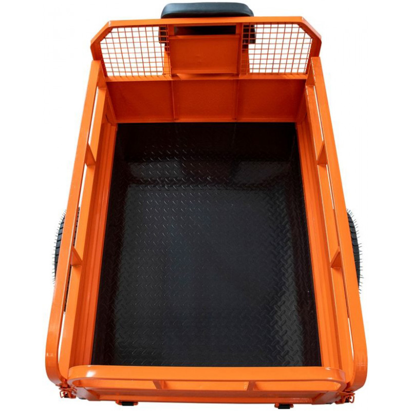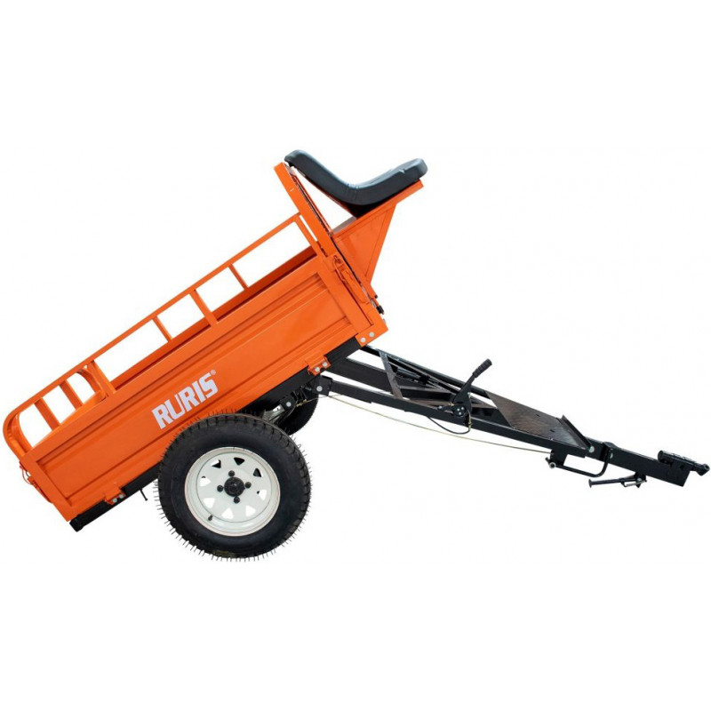 Přívěs ke kultivátoru pro přepravu stavebního a sadbového materiálu. Pevný odolný podvozek pro nerovný terén, ruční i nožní brzda. Přívěs je snadno ovladatelný díky ručnímu vyklápění. Přívěs není schválen a vybaven pro jízdu po veřejných komunikacích nebo na svahu / rampě se sklonem větším než 10 stupňů. Přívěs má uzamykatelný prostor pod sedadlem a pro lepší zdolávání nerovností má lamelová pera. Vhodný ke všem druhům kultivátorů. Včetně sady nářadí, upevňovacích háků a skládacího zvedáku.