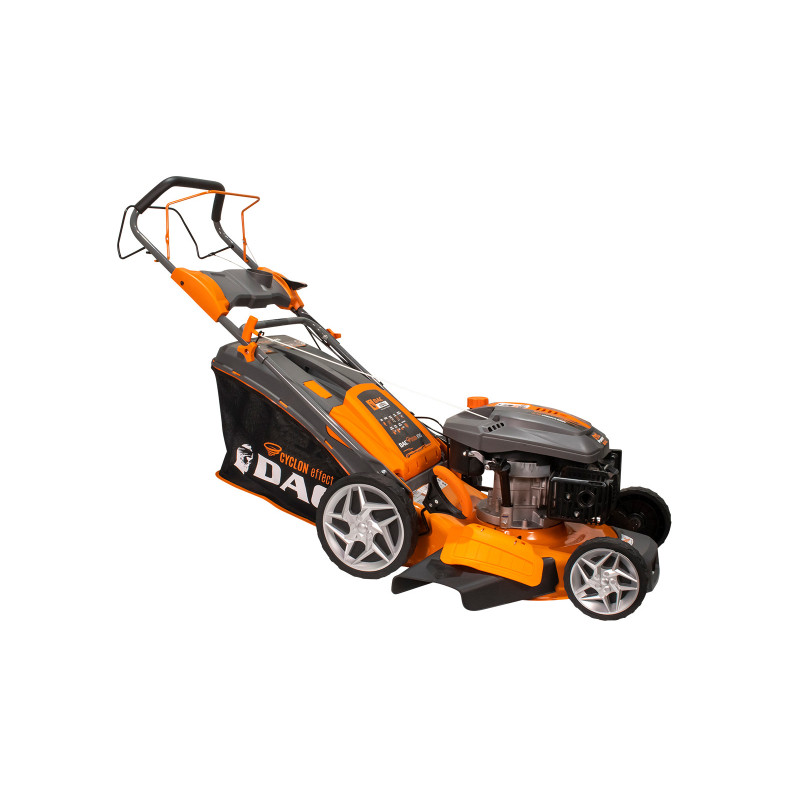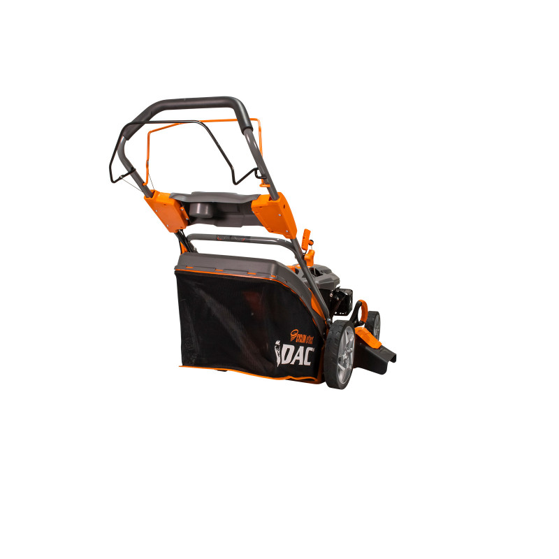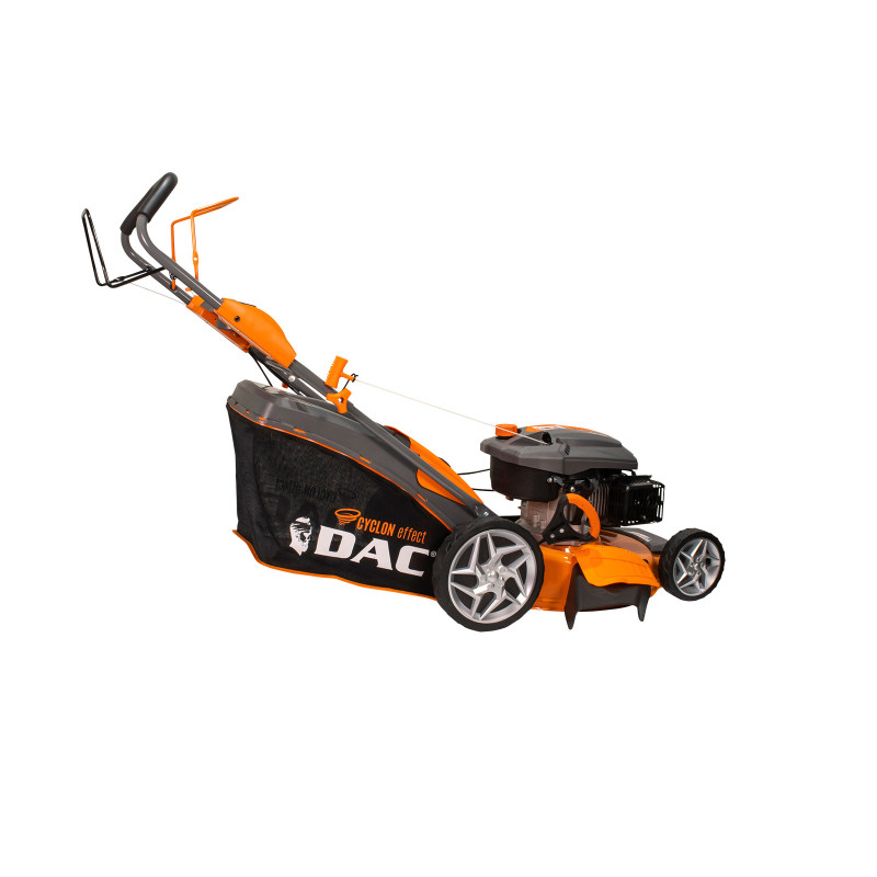 Sekačka DAC 150XL, vybavená 4-taktním motorem o výkonu 5 HP, je nejvýkonnější v řadě DAC, přičemž jako jediná má 5 funkcí: sběr, zadní výhoz, boční výhoz, mulčování a samočištění. Sekačka na trávu má pracovní šířku 50 centimetrů a je ideální pro sečení trávy na ploše až 2000 metrů čtverečních. Důležitým aspektem pro dosažení dokonalého trávníku je výška sečení trávy. U sekačky na trávu DAC 150XL je výška sečení mezi 25 - 65 mm, kterou lze nastavit v 5 krocích ovládáním bočního zařízení umístěného na základně podvozku. Velký průměr kol umožňuje sečení trávníku i na svazích. Sekačka na trávu DAC 150XL vybavená systémem vlastního pohonu nabízí pohodlí, efektivitu a zkrácenou pracovní dobu. Díky ergonomickému skládacímu systému rukojeti a sběrného sáčku se sekačka na trávu DAC 150XL snadno skladuje nebo přepravuje. Ergonomická rukojeť.