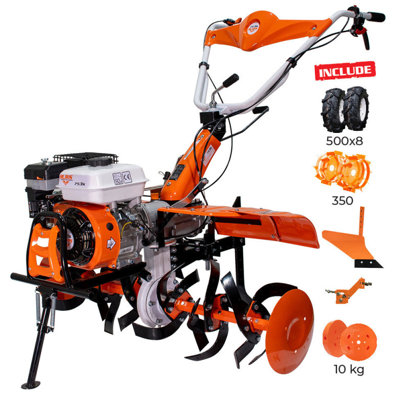 Kultivátor je vybaven 4-taktním motorem poháněným benzínem a je ideální pro práci na velkých plochách. Šířka nožů je nastavitelná a lze ji nastavit od 990 mm do 1010 mm.