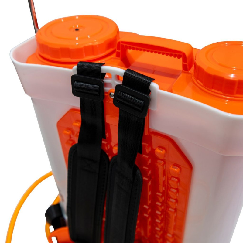 Akumulátorový postřikovač je ideálním nástrojem pro postřikování plodin, stromů, zahradních rostlin nebo révy, čímž výrazně usnadňuje práci uživatele. Díky přesnému a rovnoměrnému působení zajišťuje efektivní pokrytí ošetřovaných povrchů, čímž výrazně zkracuje čas a úsilí potřebné pro zahradnické práce. Postřikovač je napájen akumulátorem, který vydrží pracovat 4 hodiny, což poskytuje svobodu pohybu bez závislosti na externích zdrojích energie. Tato velkorysá autonomie umožňuje práci na velkých plochách na jedno nabití, čímž se eliminuje potřeba častých přerušení. 18-litrová nádrž umožňuje uživateli pracovat déle bez doplňování. Postřikovač je vybaven LED displejem, který poskytuje důležité informace o stavu nabití baterie a provozu zařízení. Tento detail přispívá k lepší kontrole nad aktivitou v reálném čase. Teleskopická kovová tryska je odolná a snadno se nastavuje na požadovanou délku nebo vzdálenost, což poskytuje flexibilitu a přesnost při aplikaci ošetření. Postřikovač je vybaven širokým sortimentem trysek (tryska se standardním vývodem, dvojitá tryska pro dvojité pokrytí, tryska s jedním vývodem se 4 rozprašovacími zónami, tryska s 5 zónami rozprašování pro široké rozptylování). Výkonný motor zajišťuje konstantní tlak 6 barů, který je nezbytný pro rovnoměrné stříkání a hluboké pronikání látek. Další silnou stránkou postřikovače je měděný konektor hadice, který zabraňuje úniku kapaliny a zajišťuje pevné a odolné spojení. Postřikovač je vybaven funkcí automatického míchání, která se aktivuje pouhým stisknutím tlačítka. Tato funkce udržuje homogenní koncentraci roztoku v nádrži. Pro větší pohodlí je postřikovač vybaven odolnými a ergonomickými ramenními popruhy, které jsou navrženy tak, aby rovnoměrně rozložily hmotnost na zádech a snížily nepohodlí při dlouhodobém používání.
