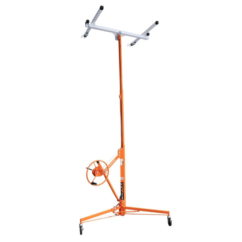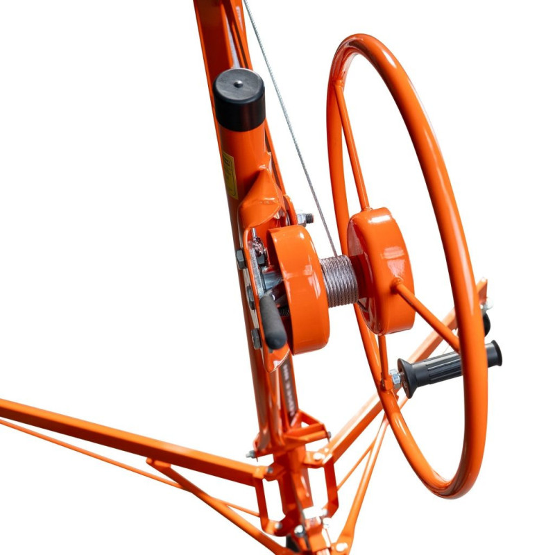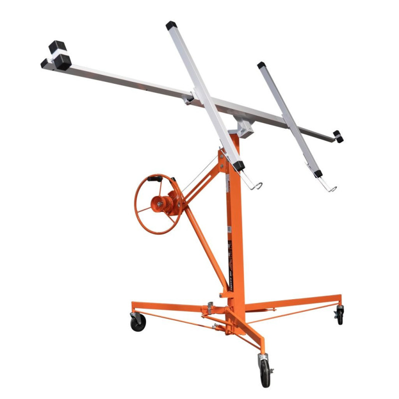 Zvedací zařízení na sádrokartonové desky pro snadnou a bezpečnou montáž sádrokartonu na stěny a stropy. Výrazně snižuje potřebnou fyzickou námahu a umožňuje přesné zvedání a upevňování desky o hmotnosti až 68 kg. Používáním zařízení se eliminuje riziko zranění způsobených nesprávnou manipulací a výrazně se zlepšuje ergonomie práce, zejména při rozsáhlých pracích nebo v těžko dostupných prostorách. Montáž se provádí rychleji a přesněji, s rovnoměrným zarovnáním desek, což vede k úspoře času a materiálu. Zařízení je nastavitelné a všestranné, lze jej použít na různé velikosti desek a montážní polohy, ať už vertikálně nebo horizontálně. Minimální výška zdvihu je 1,4 m a maximální 3,35 m, přičemž maximální rozměry desky jsou 1,22 x 4,88m. Zařízení se ovládá pomocí kliky. Teleskopická ramena zařízení s nastavitelnými rozměry mezi 1,25 a 2,88 metry nabízejí pozoruhodnou flexibilitu při používání a umožňují rychlé přizpůsobení se různým výškám a velikostem sádrokartonových desek. Tato funkce je obzvláště užitečná při práci na vysokých stropech nebo ve stísněných prostorách, kde je přístup obtížný. Nastavení délky ramene pomáhá zajistit přesné umístění desek, snižuje potřebu dalšího vybavení a umožňuje uživateli efektivně pracovat v různých podmínkách. Pro snadnou manipulaci je stroj vybaven kolečky.