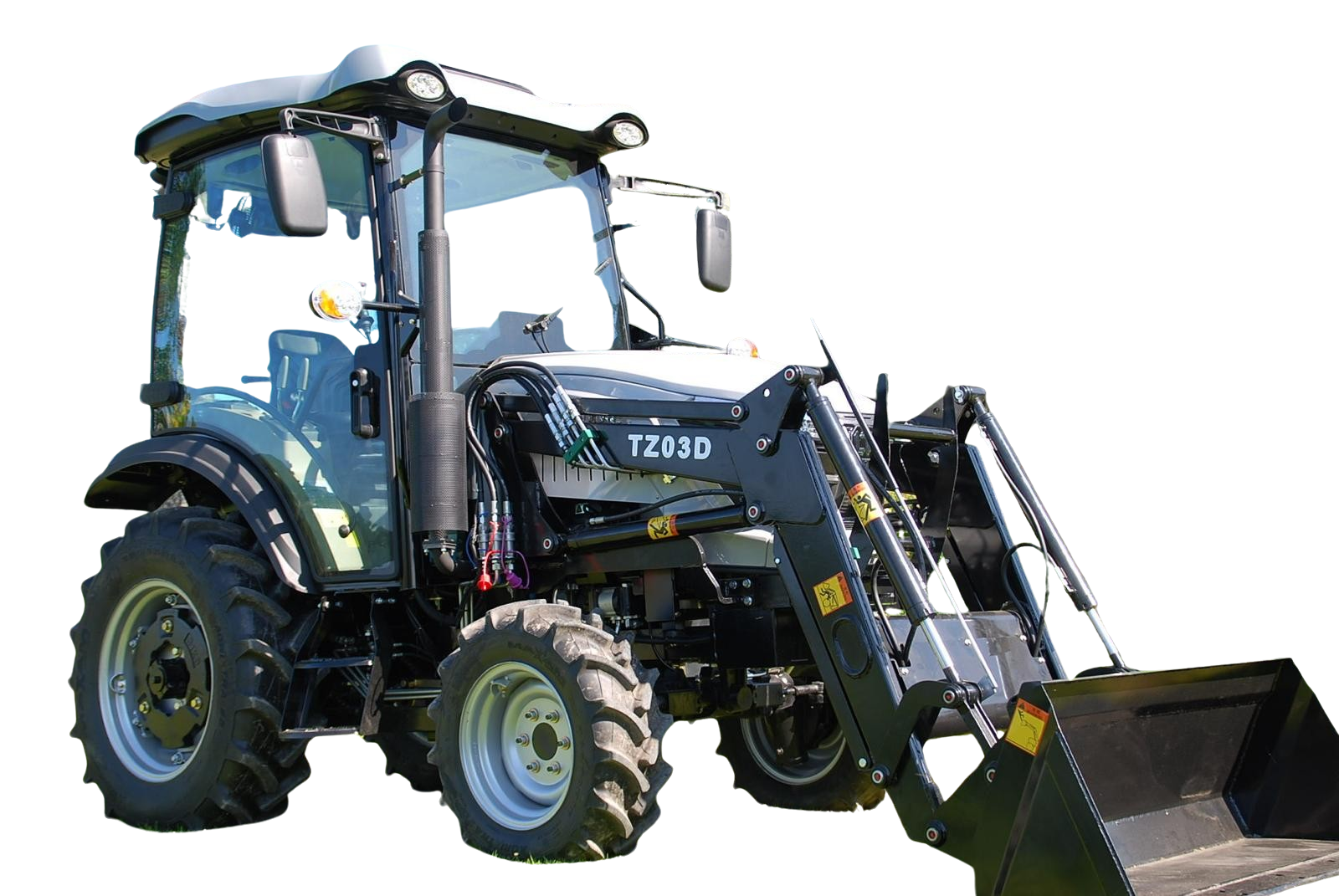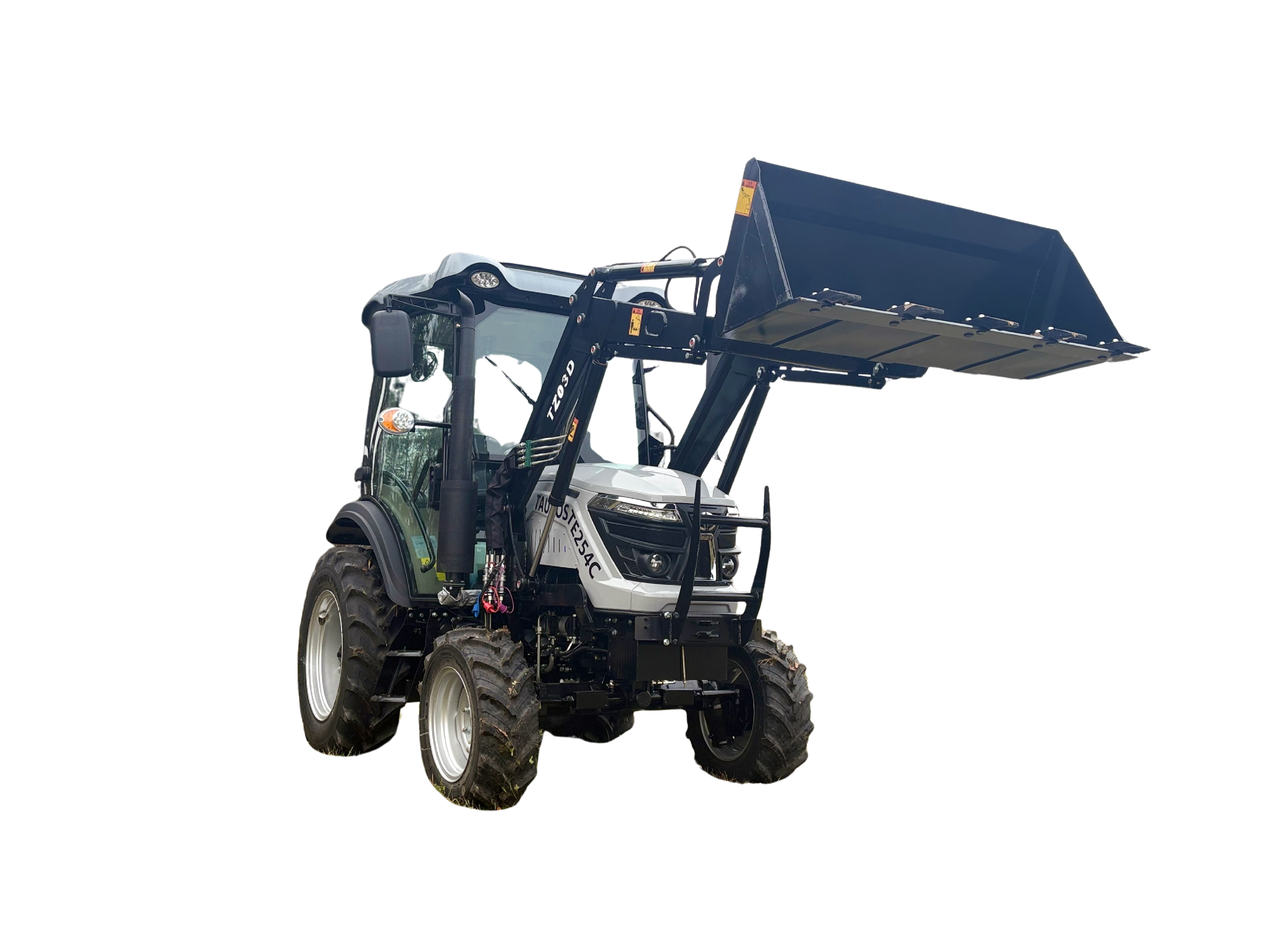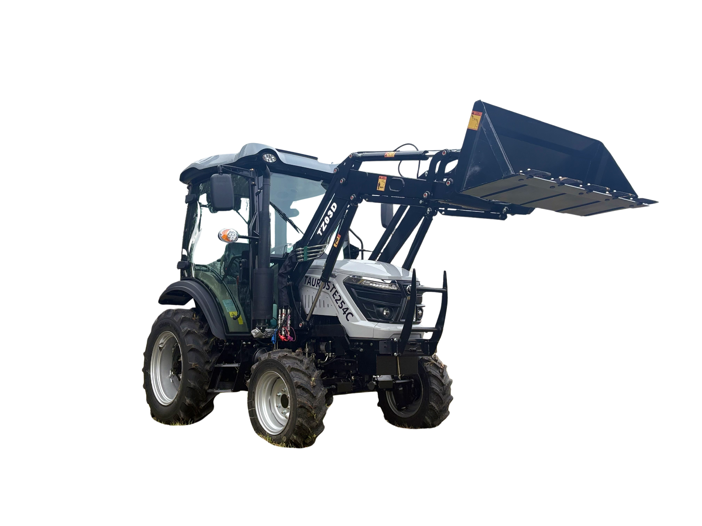 Tauros TE254C lze dodat s výkonným čelním nakladačem Tauros TZ03D, který je plně kompatibilní a ideální pro manipulaci s materiálem na farmě i v lese.