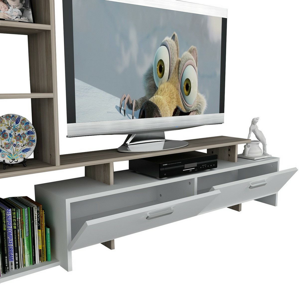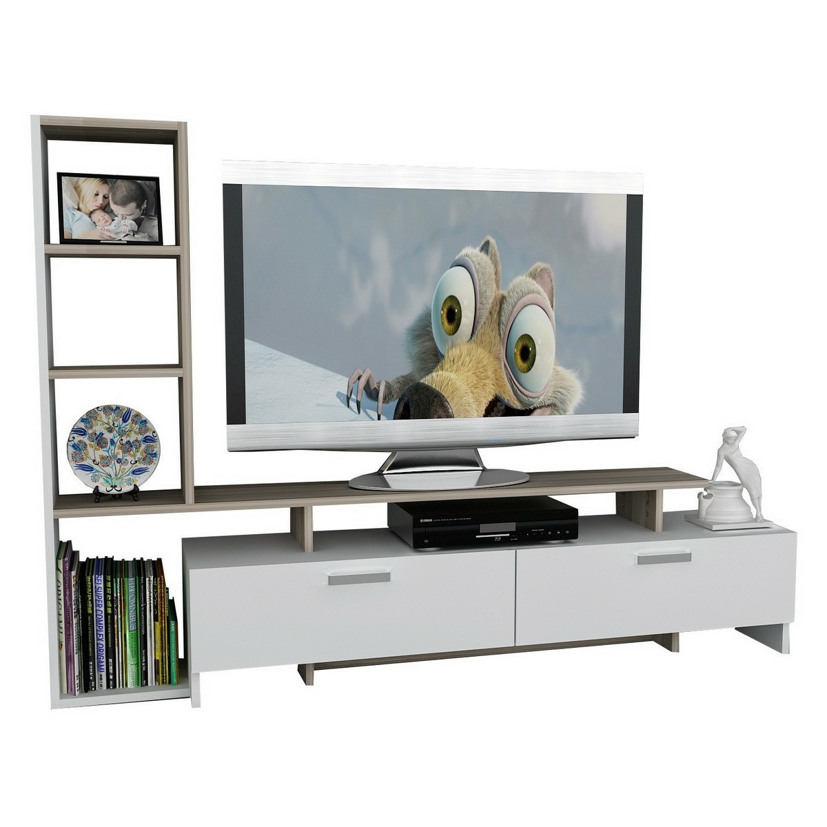 Televizní stolek s knihovnou Simal White Cardoba přináší skandinávský styl v elegantní kombinaci bílé barvy a dekoru cordoba, která působí svěže, útulně a nadčasově. Čisté linie a promyšlené uspořádání vytvářejí harmonický celek vhodný do moderních i minimalistických interiérů. Konstrukce je vyrobena ze 100% melaminem potažené dřevotřísky o tloušťce 18 mm, což zajišťuje pevnost, stabilitu a dlouhou životnost. Sestava kombinuje TV stolek, knihovnu, komodu a horní polici, díky čemuž nabízí dostatek úložného prostoru pro elektroniku, knihy i dekorace. Možnost upevnění na stěnu pomáhá šetřit místo a vytváří čistý, vzdušný vzhled obývacího pokoje.Parametry a specifikace: materiál: 100% melaminem potažená dřevotříska tloušťka desky: 18 mm rozměry TV sestavy: šířka 168,2 cm, výška 120 cm, hloubka 22 cm rozměry TV panelu: šířka 120 cm, výška 29,8 cm rozměry komody: šířka 69,8 cm, výška 21,6 cm šířka horní police: 30 cm barva: bílá / cordoba