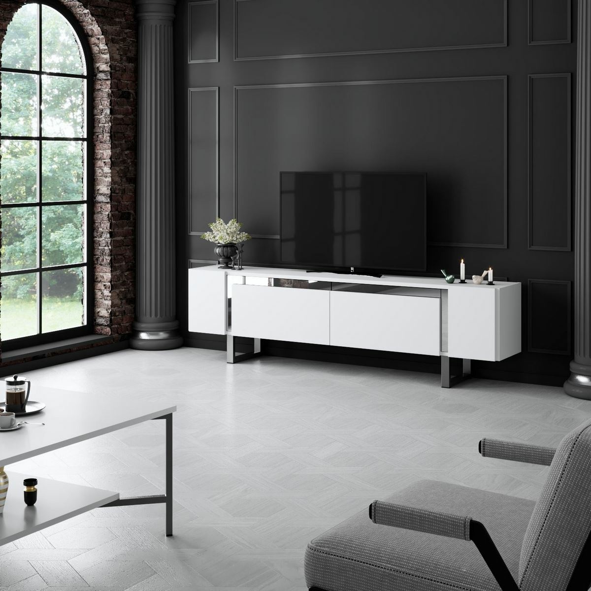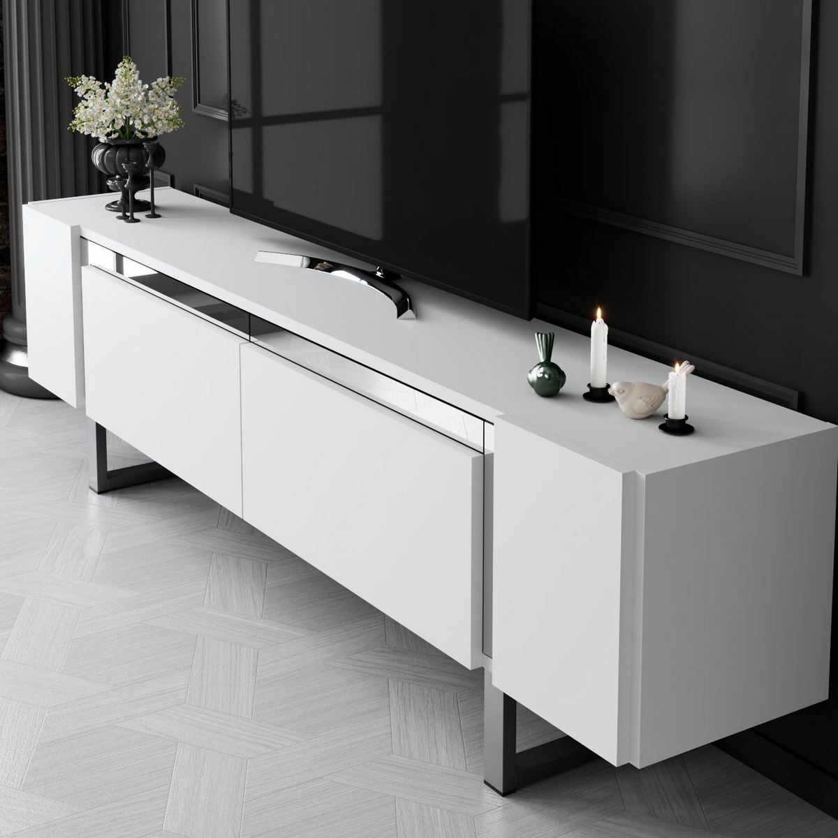 Televizní stolek Yildiz White and Silver