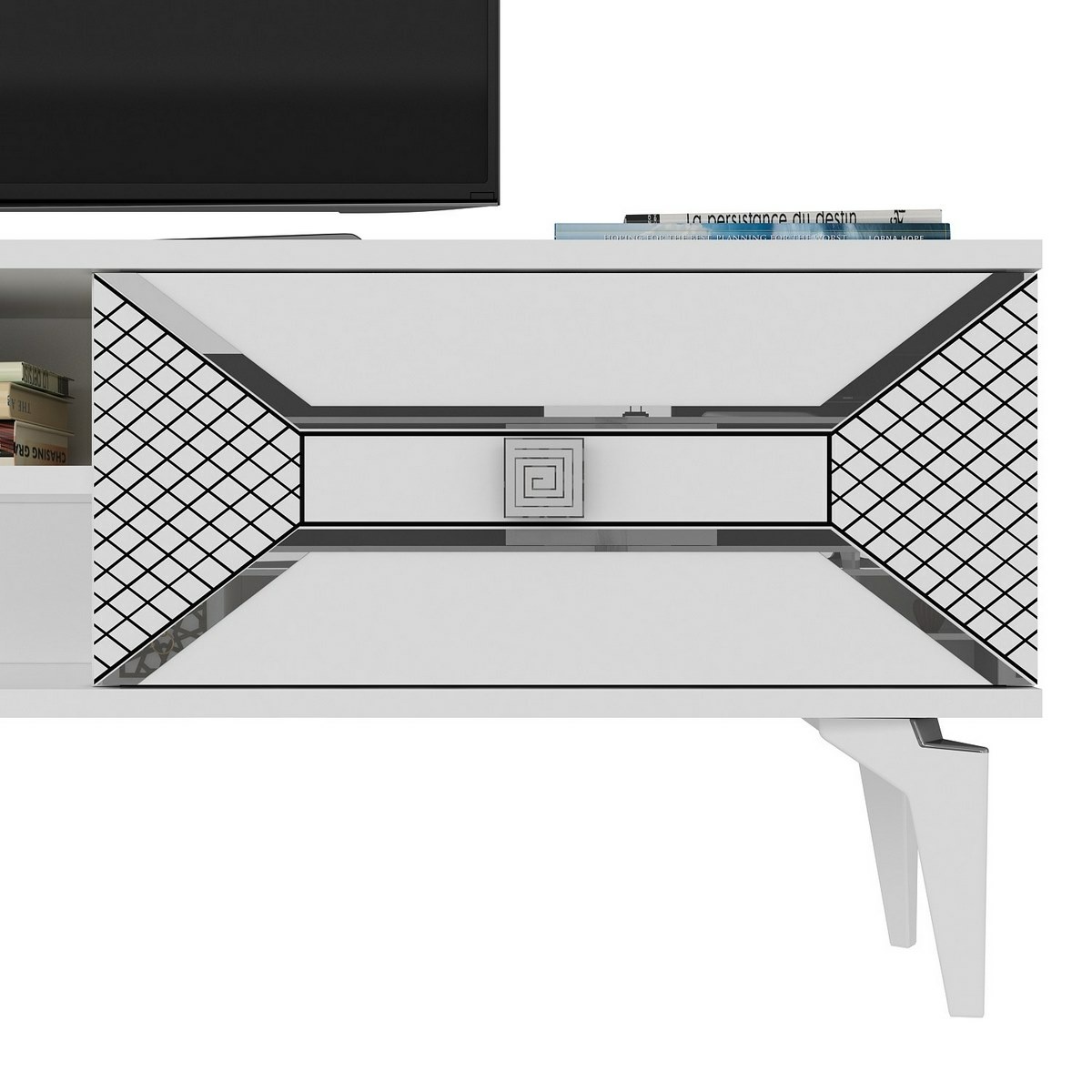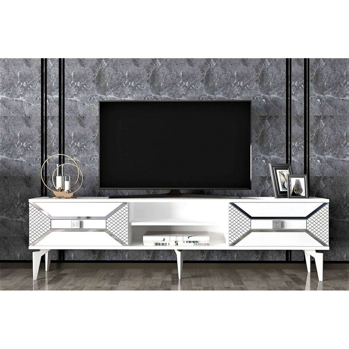 Televizní stolek Yumedi White and Silver přináší do obývacího pokoje elegantní spojení moderního designu a praktického využití. Kombinace bílé barvy a stříbrných detailů působí svěže, čistě a nadčasově, takže se stolek snadno začlení do různých stylů interiéru.Korpus je vyroben ze 100% melaminem potažené dřevotřísky o tloušťce 18 mm, která zajišťuje pevnost, stabilitu a dlouhou životnost při každodenním používání. Promyšlené rozměry poskytují dostatek prostoru pro televizor, multimediální zařízení i další doplňky, zatímco zvýšené nohy usnadňují úklid a dodávají stolku lehký, moderní vzhled.Televizní stolek Yumedi je ideální volbou pro ty, kteří hledají funkční nábytek s elegantním vzhledem a důrazem na detail.Technické detaily: materiál: 100% melaminem potažená dřevotříska tloušťka desky: 18 mm rozměry: šířka 150 cm, výška 50 cm, hloubka 30 cm výška nohou: 20 cm barva: bílá / stříbrná
