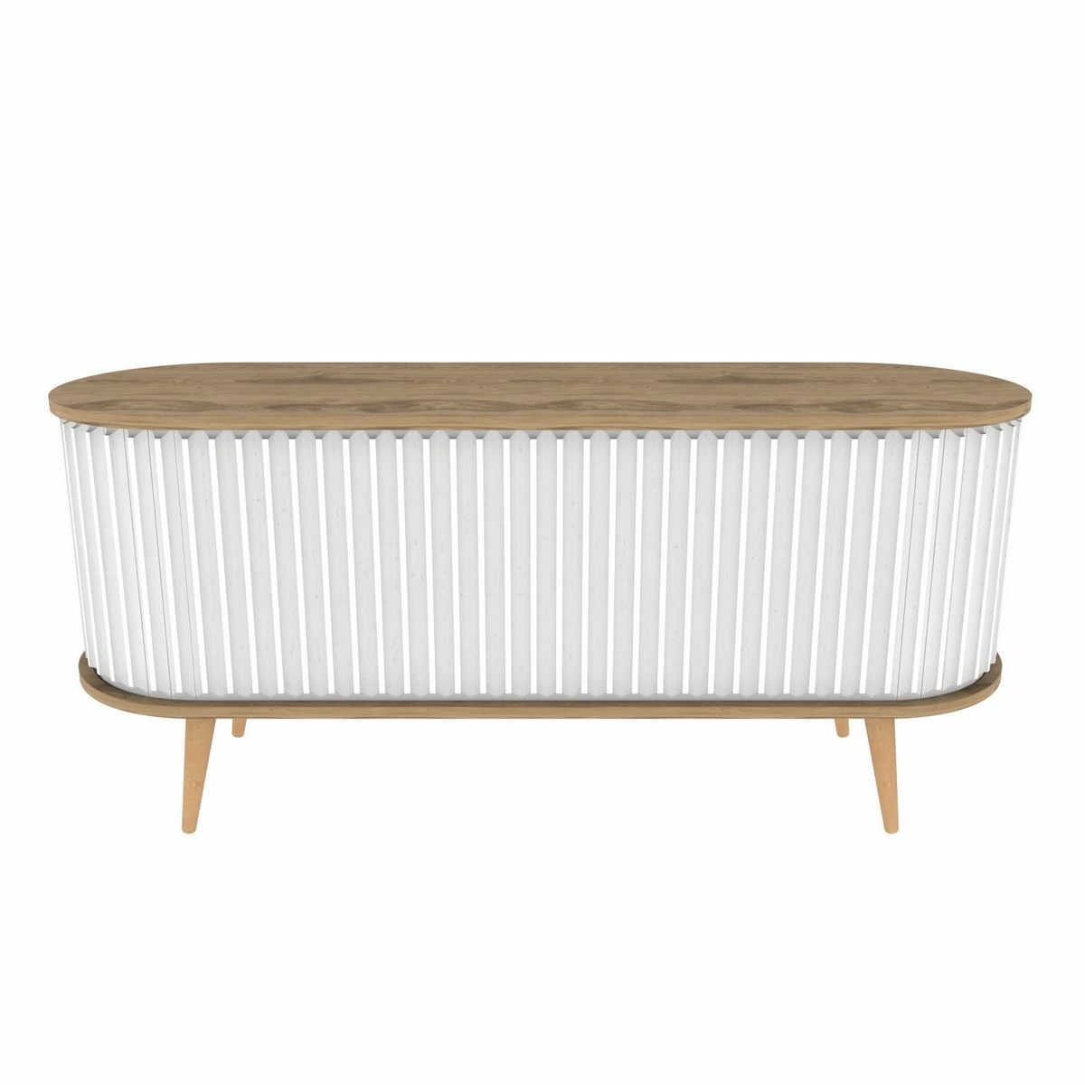 Televizní stolek Stor Oak and White I přináší moderní a neotřelý design v harmonické kombinaci dubového dekoru a bílé barvy, která působí svěže, elegantně a nadčasově. Čisté linie a vyvážené proporce z něj dělají výrazný, ale zároveň praktický prvek moderního obývacího pokoje.Korpus je vyroben ze 100% melaminem potažené dřevotřísky o tloušťce 18 mm, která zajišťuje pevnost a stabilitu při každodenním používání. Díky větší hloubce a výšce nabízí stolek dostatek prostoru pro TV techniku, herní konzole i další příslušenství a pomáhá udržet zábavní zónu přehlednou a funkční.Parametry a specifikace: materiál: 100% melaminem potažená dřevotříska tloušťka desky: 18 mm rozměry: šířka 140 cm, výška 64 cm, hloubka 43 cm barva: dub / bílá