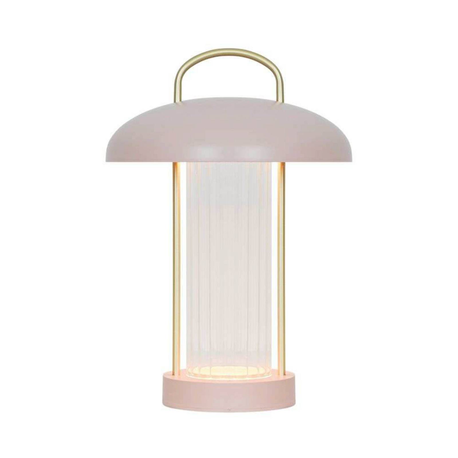 LED stolní lampa Mirano v barvě starorůžové LED stolní lampa Mirano se skládá z kovového rámu v barvě starorůžové a průhledného, rýhovaného skleněného stínidla, které dodává vyzařovanému světlu zvláštní odstín. Harmonické barevné provedení dodává každému obývacímu prostoru stylový nádech. Díky integrovanému LED světelnému zdroji poskytuje lampa příjemnou, teplou bílou barvu světla, která vytváří útulnou atmosféru. Třístupňová funkce stmívání umožňuje flexibilní nastavení jasu, aby bylo možné individuálně přizpůsobit prostor. Díky své přenosné konstrukci nabízí lampa mnoho možností použití a snadno se přizpůsobí různým konceptům bydlení.