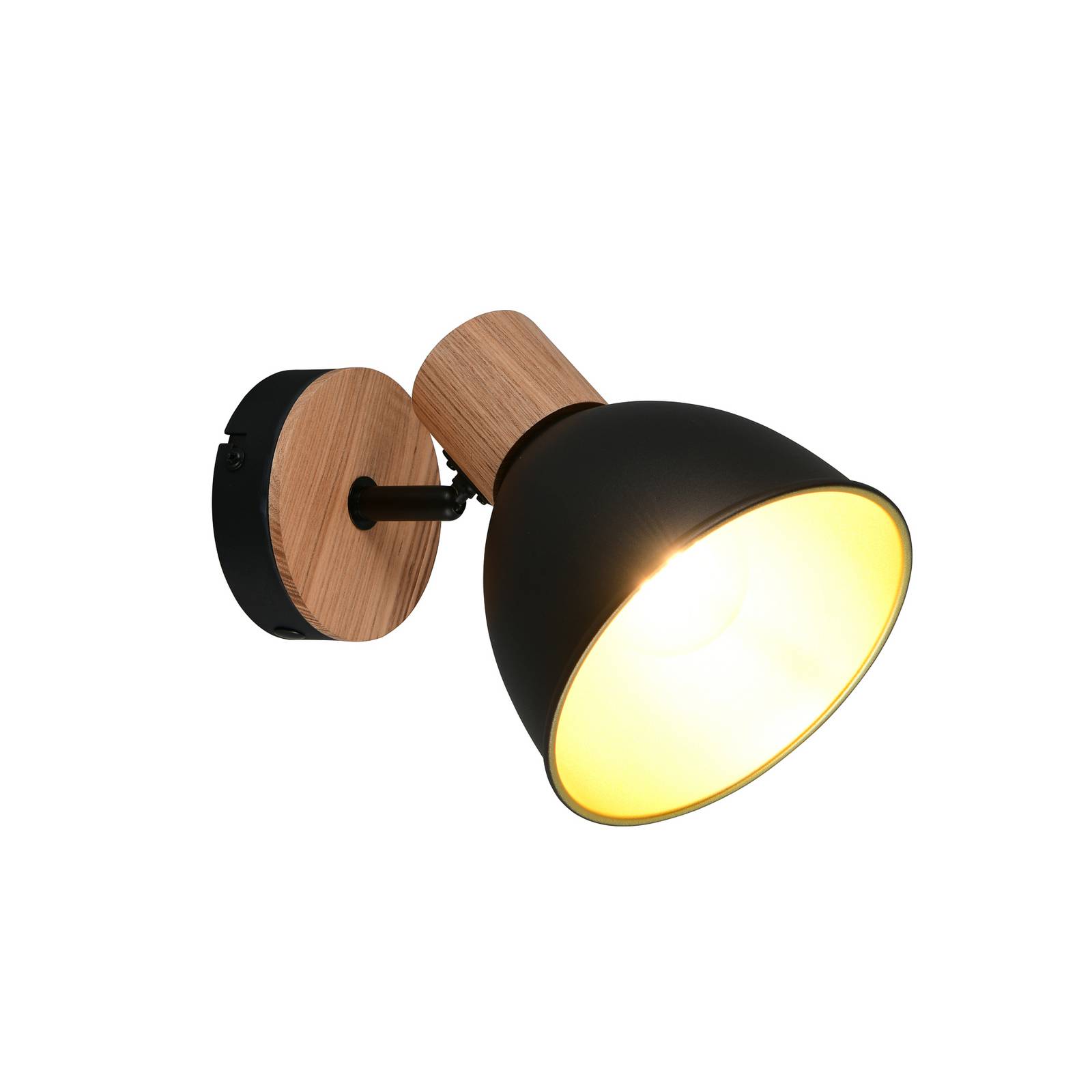 Reality Leuchten Stropní světlo Delume, černé, Ø 15 cm, 1 žárovka, kov/dřevo